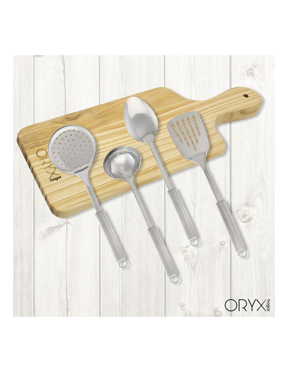 - Descubra toda la gama de utensilios de acero inoxidable: cuchara servir, cucharon servir, espumadera, rasera, varillas de batir, cuchara para helados, espatula para tartas, varilla batidora, todos ellos realizado en acero inoxidable.