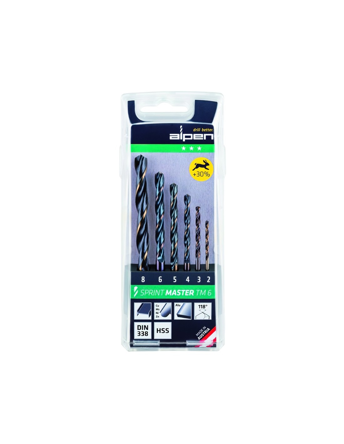 - La nueva ALPEN Sprint Master presenta nuevas dimensiones de rapidez y fiabilidad. Gracias a la geometría optimizada y al afilado especial de la broca ALPEN, se reduce el tiempo de taladrado en casi un tercio. Y ello con