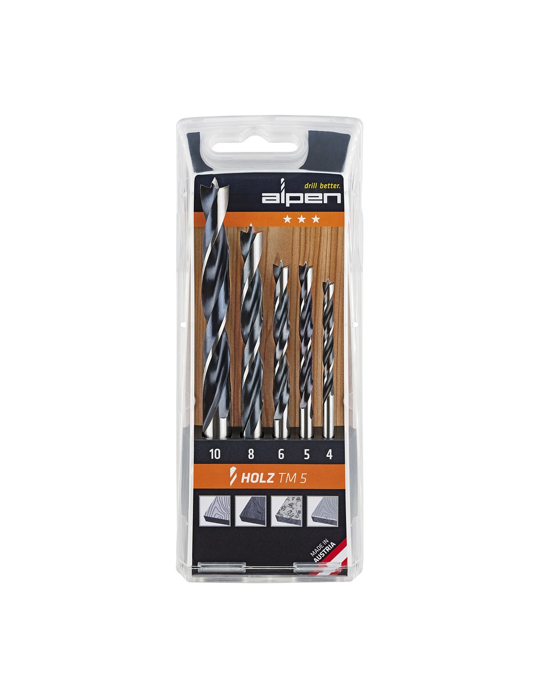 Estuche brocas alpen madera 5 piezas.