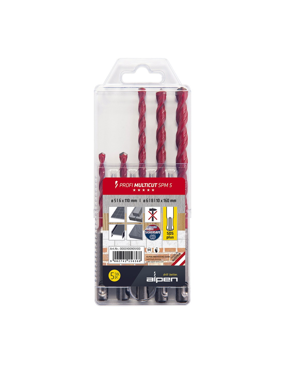 Estuche brocas Alpen Multiusos / Universal Sds Plus 5 piezas