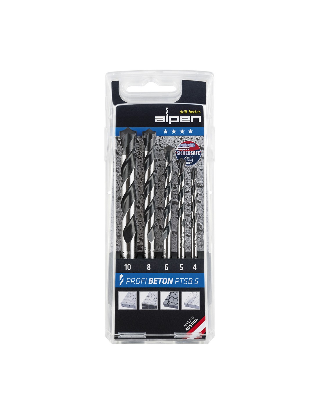 Estuche Brocas Alpen Widia Profesional Beton 5 Piezas.