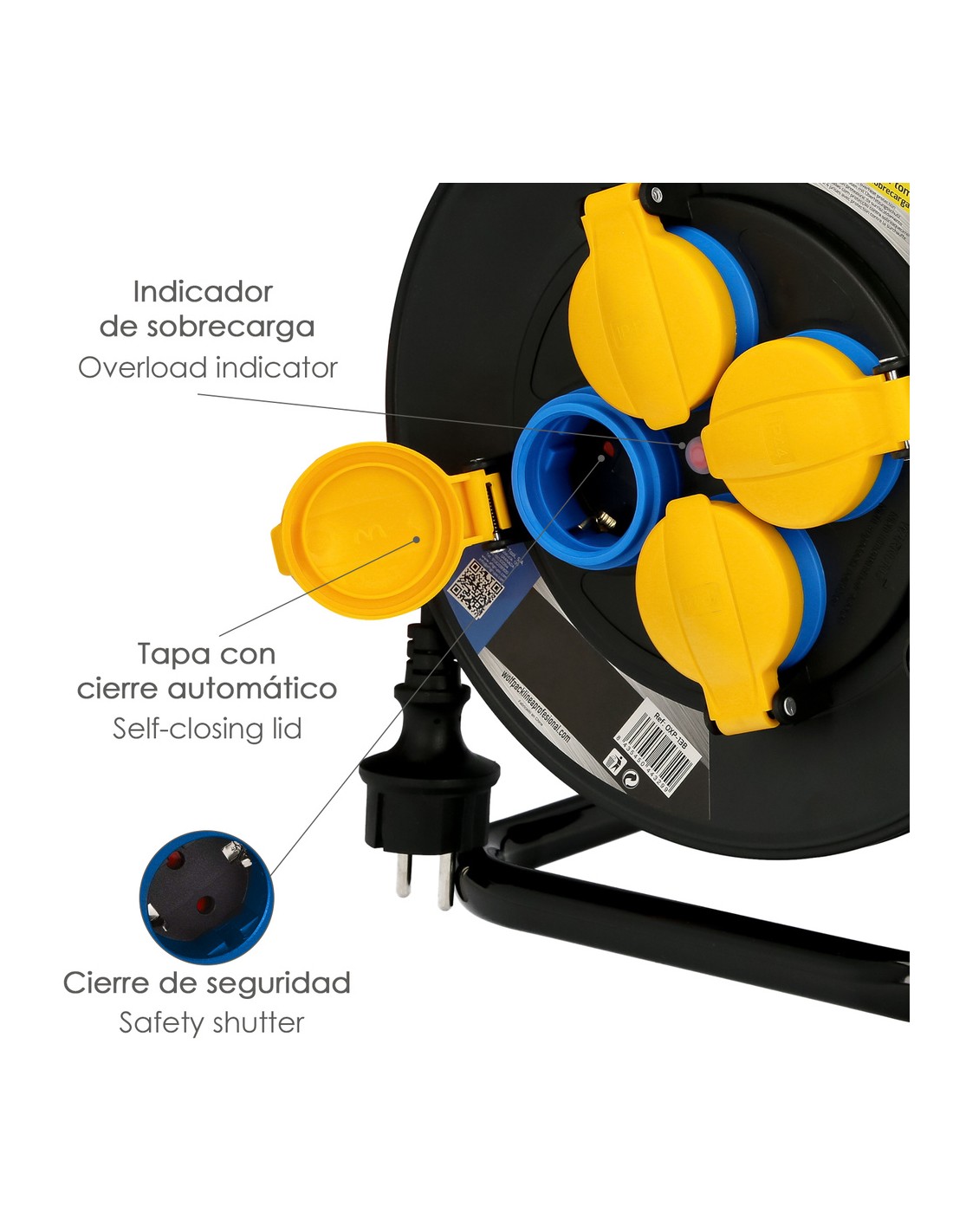 Extensible Industrial 50 metros Protección IP44 Con Tapas, Extensible Electrico, Enrollacables, Alaragadera, Cable Extensible