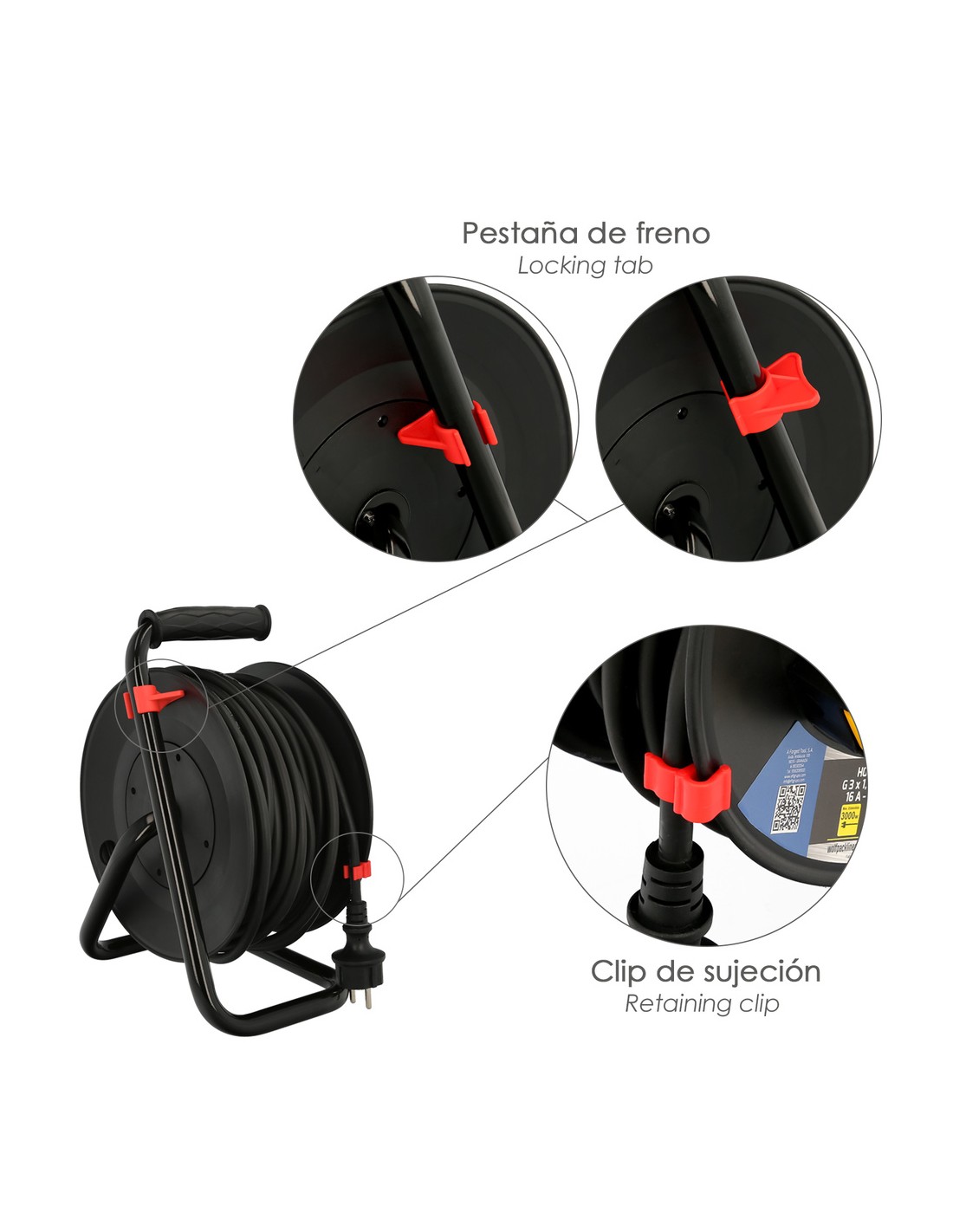 - Carga del cable enrollado / desenrollado: 900 / 3.000 Wat.