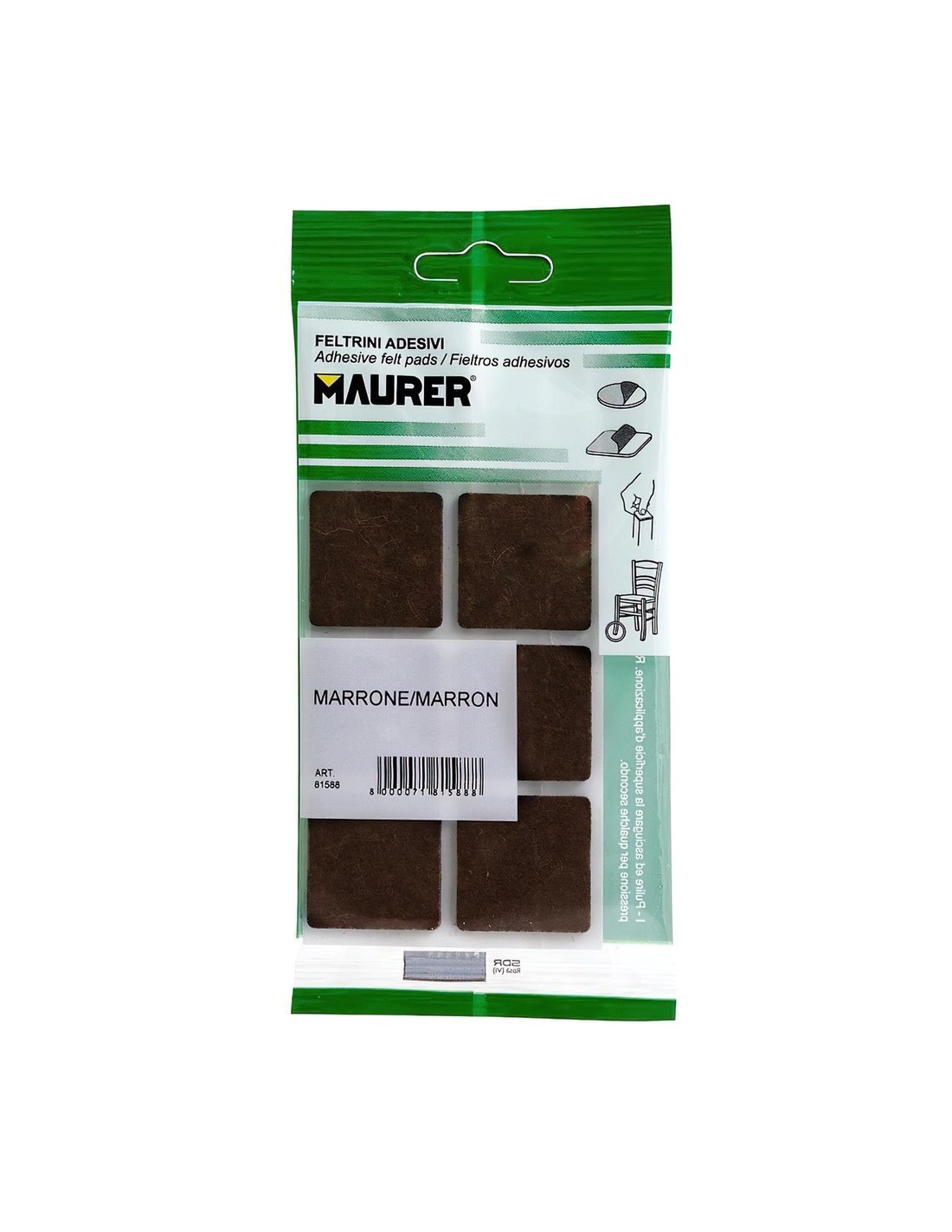 Fieltro Adhesivo 30 x 30 mm (Blister 6 Piezas) Marrón