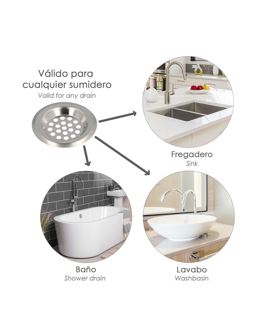- Puede ser usado en sumideros, fregaderos, ducha, etc.