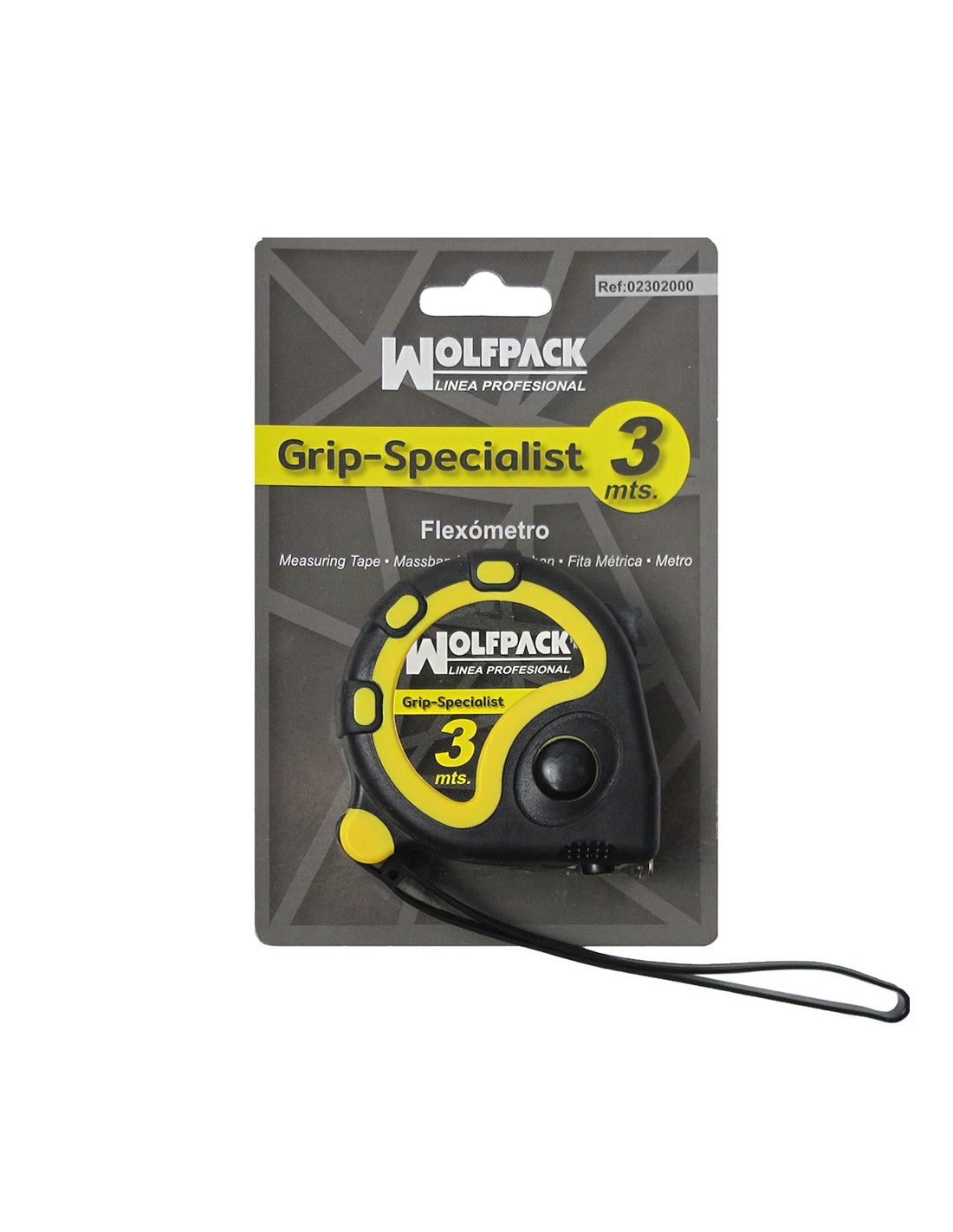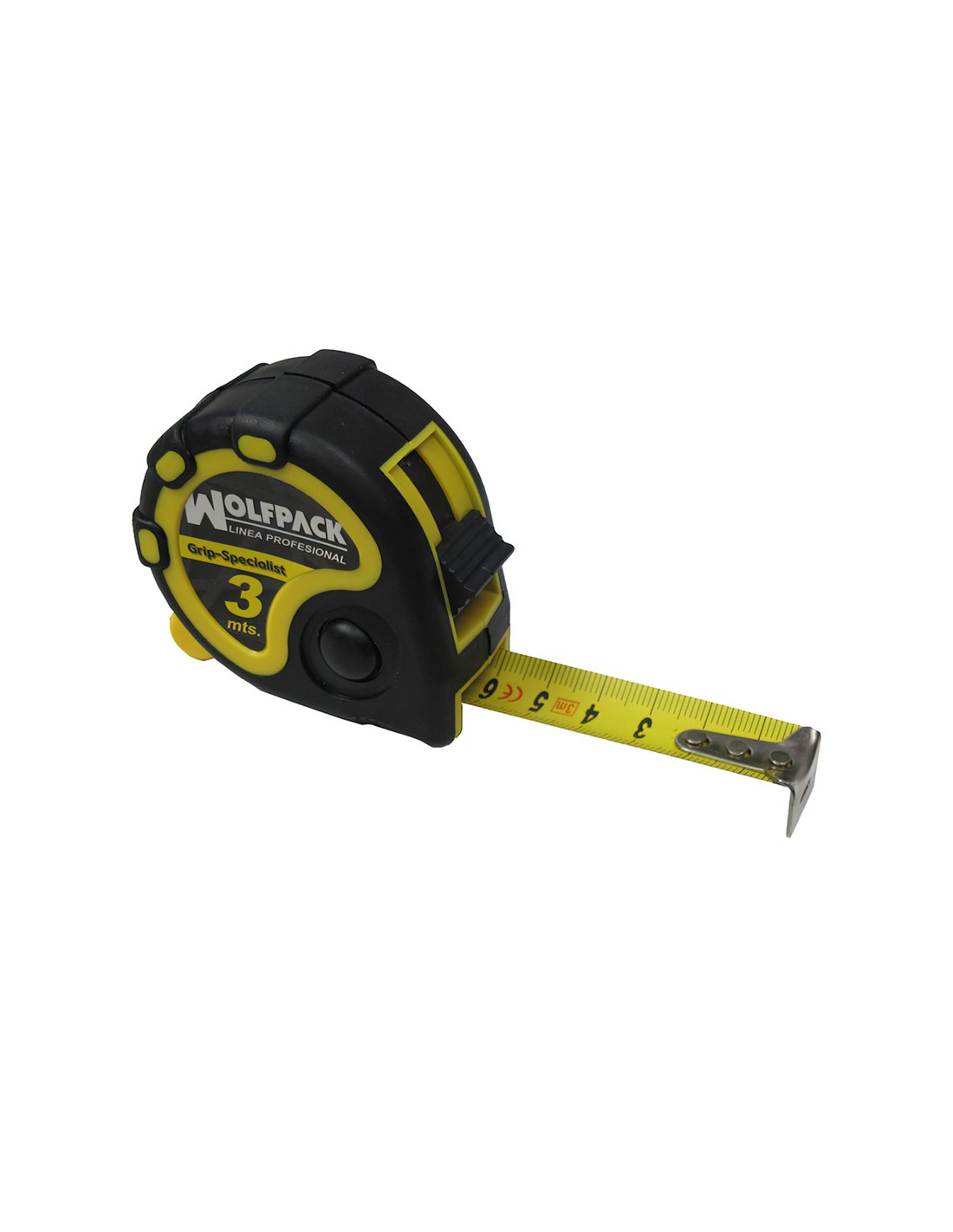 Flexometro Wolfpack Grip Special - Longitud: 3 metros - Ancho de cinta: 19 mm. - Con Freno. - Carcasa realizada en material sof-toch. - Articulo tambien conocido como cinta metrica, metro.