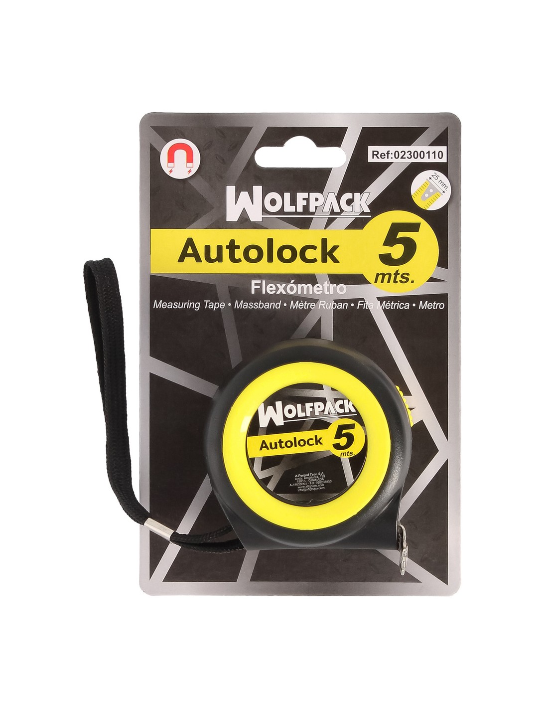 Flexometro Sistema Autolock Con Freno Automatico Longitud 5 Metros Ancho Cinta 25 mm. Magnetico. Cinta Metrica Freno Automatico