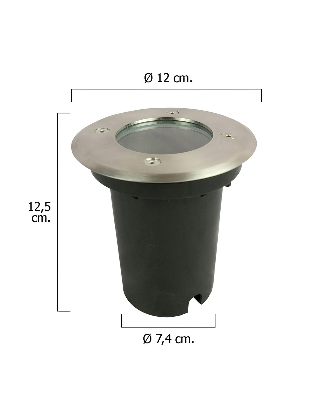 Foco / proyector led empotrar - Medida: Ø 12 x 12,5 cm. - Portalamparas gu 10 (bombilla no incluida) - Haz de luz: 45º. - Difusor de vidrio. - Grado de protección 54