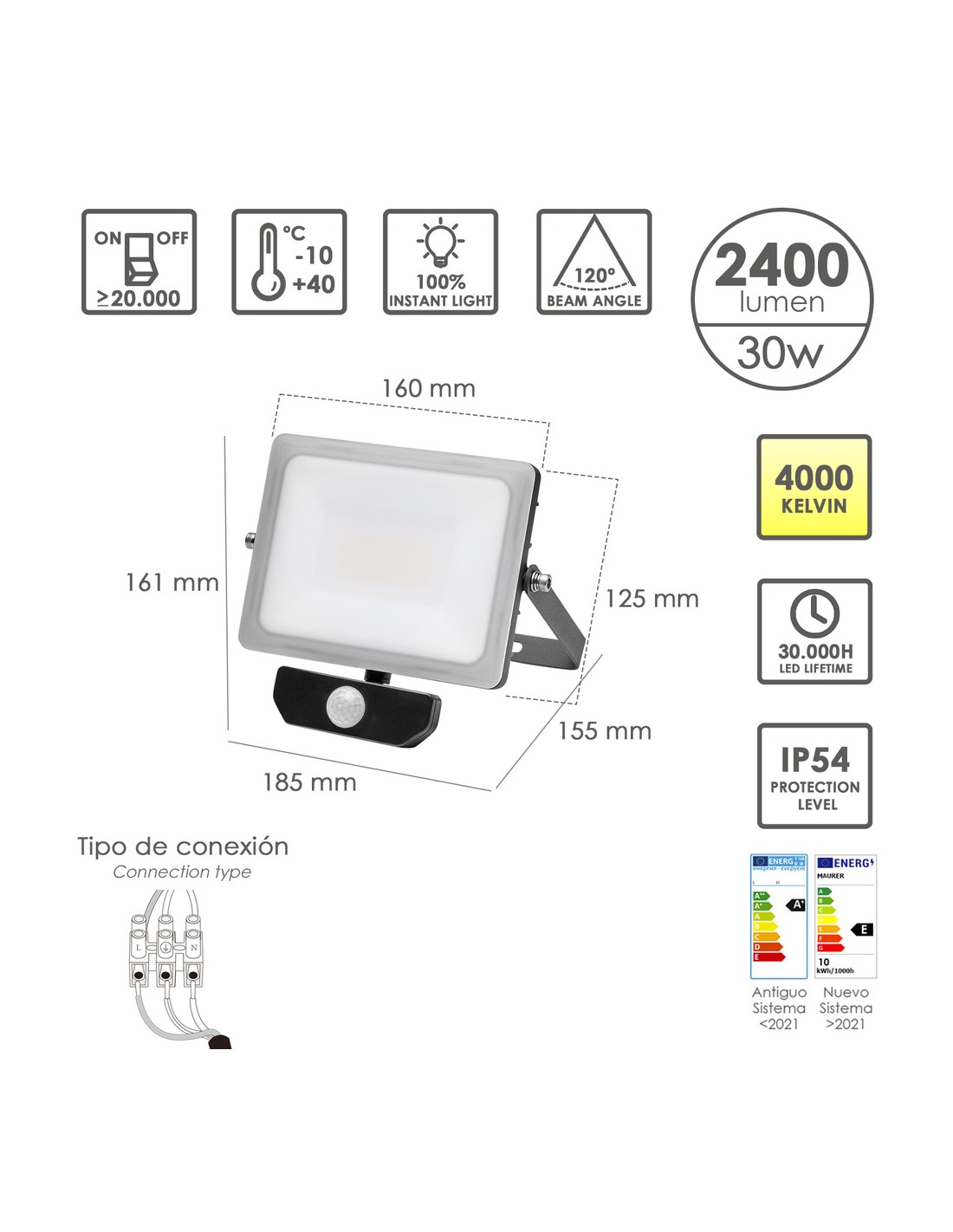 - Luz blanca (4000°K).