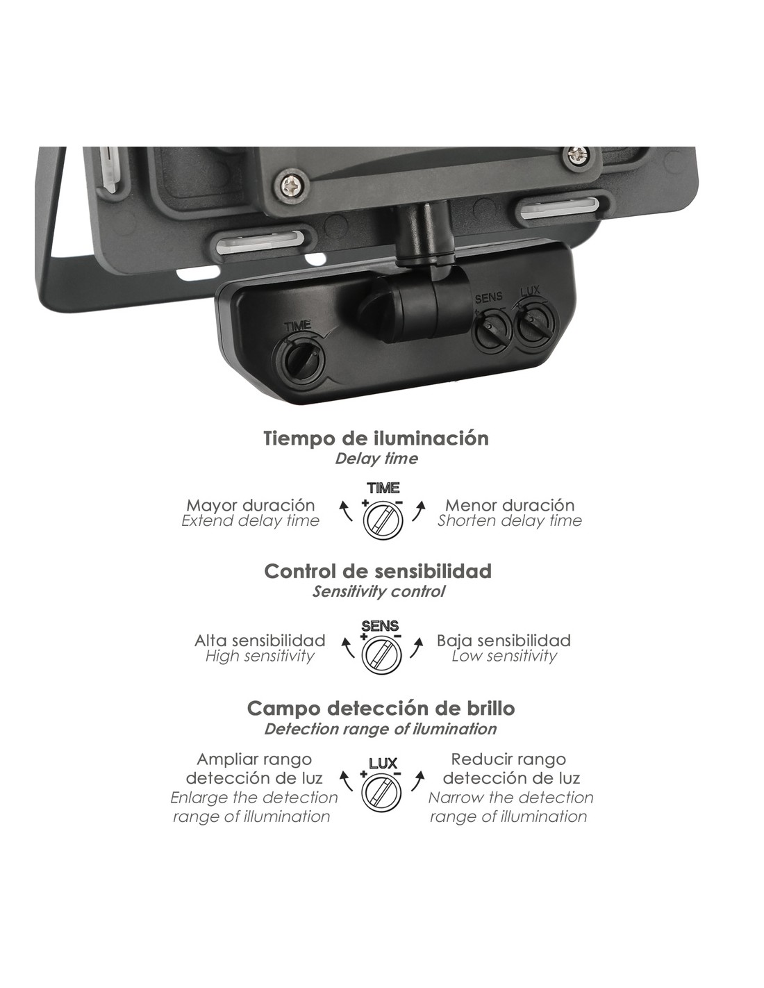 - Foco Ideal para usar en jardines, cocheras, garajes, trasteros, terrazas, azoteas, balcones, etc.
