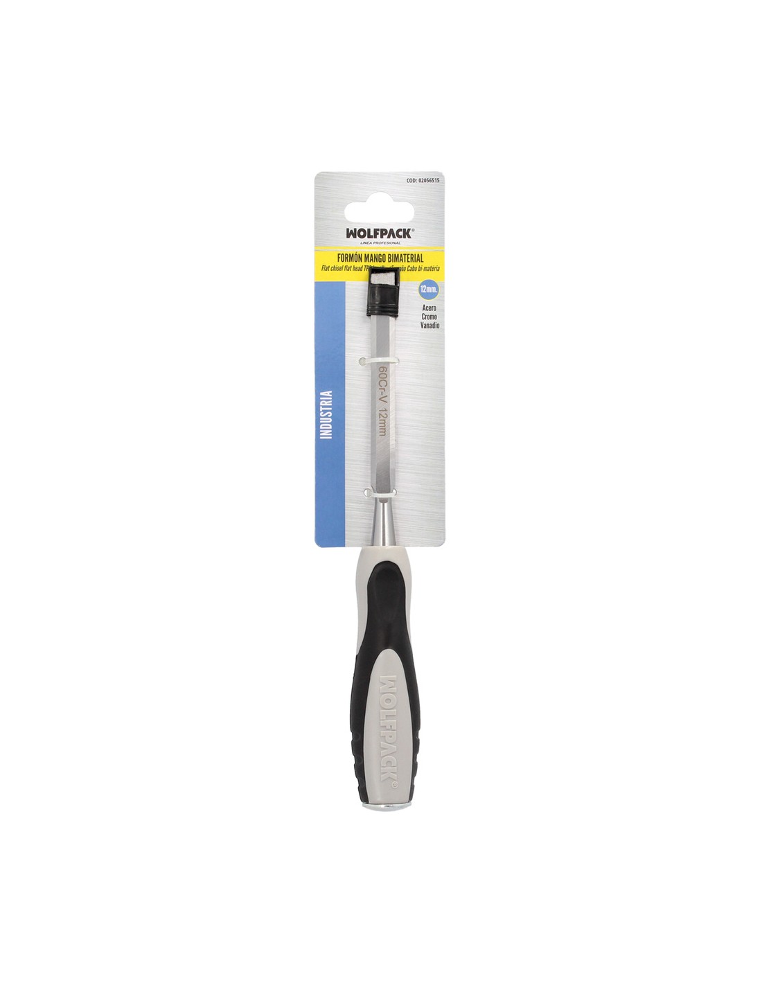 Formon Wolfpack Mango bimaterial 12 mm. - Medidas: largo x ancho, 260 x 12 mm. - Mango ergonómico bimaterial. - Fusión térmica entre mango y hoja para mayor resistencia. - Hoja de acero al cromo vanadio (especial para maderas muy duras).