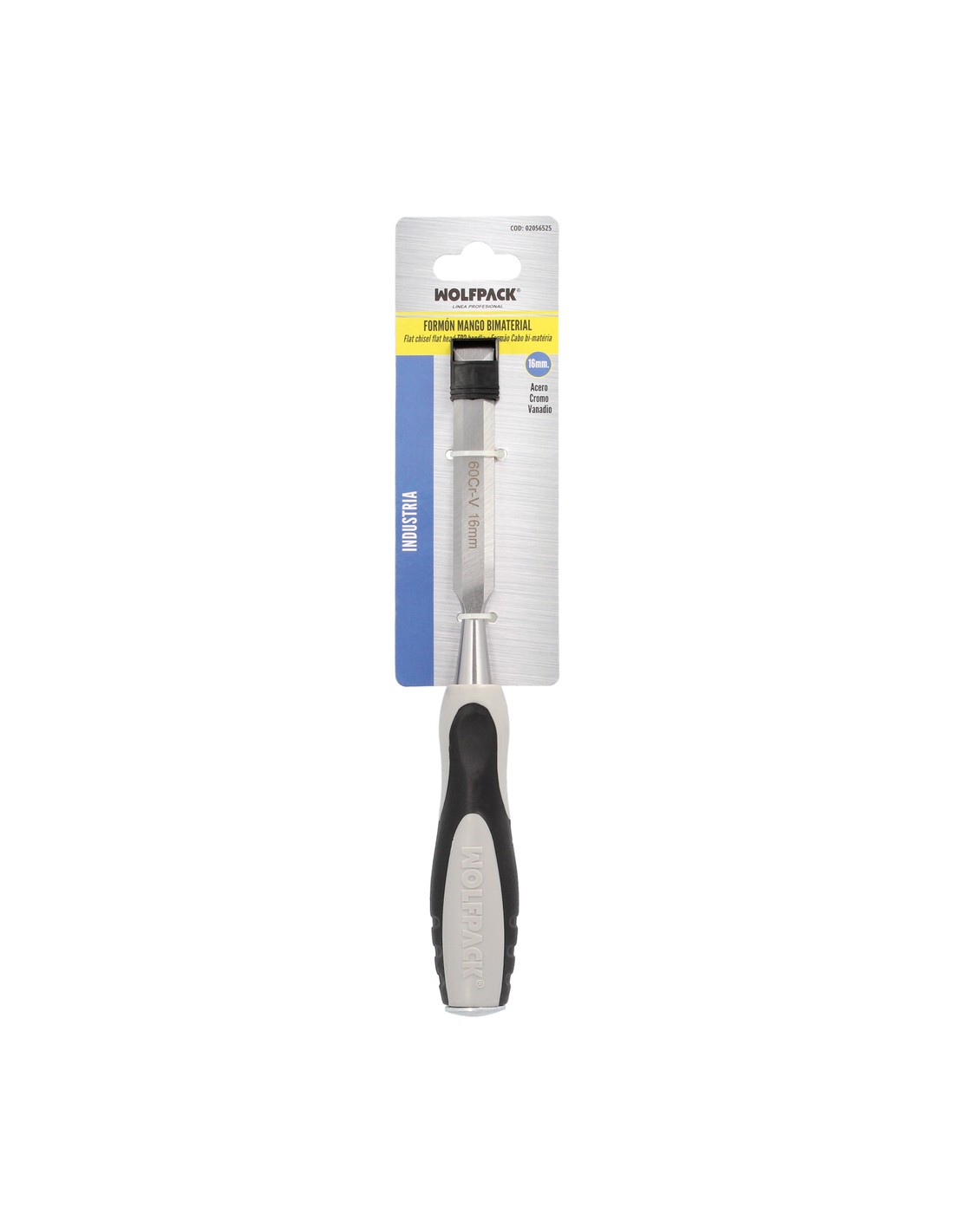 Formon Wolfpack Mango bimaterial 16 mm. - Medidas: largo x ancho, 260 x 16 mm. - Mango ergonómico bimaterial. - Fusión térmica entre mango y hoja para mayor resistencia. - Hoja de acero al cromo vanadio (especial para maderas muy duras).