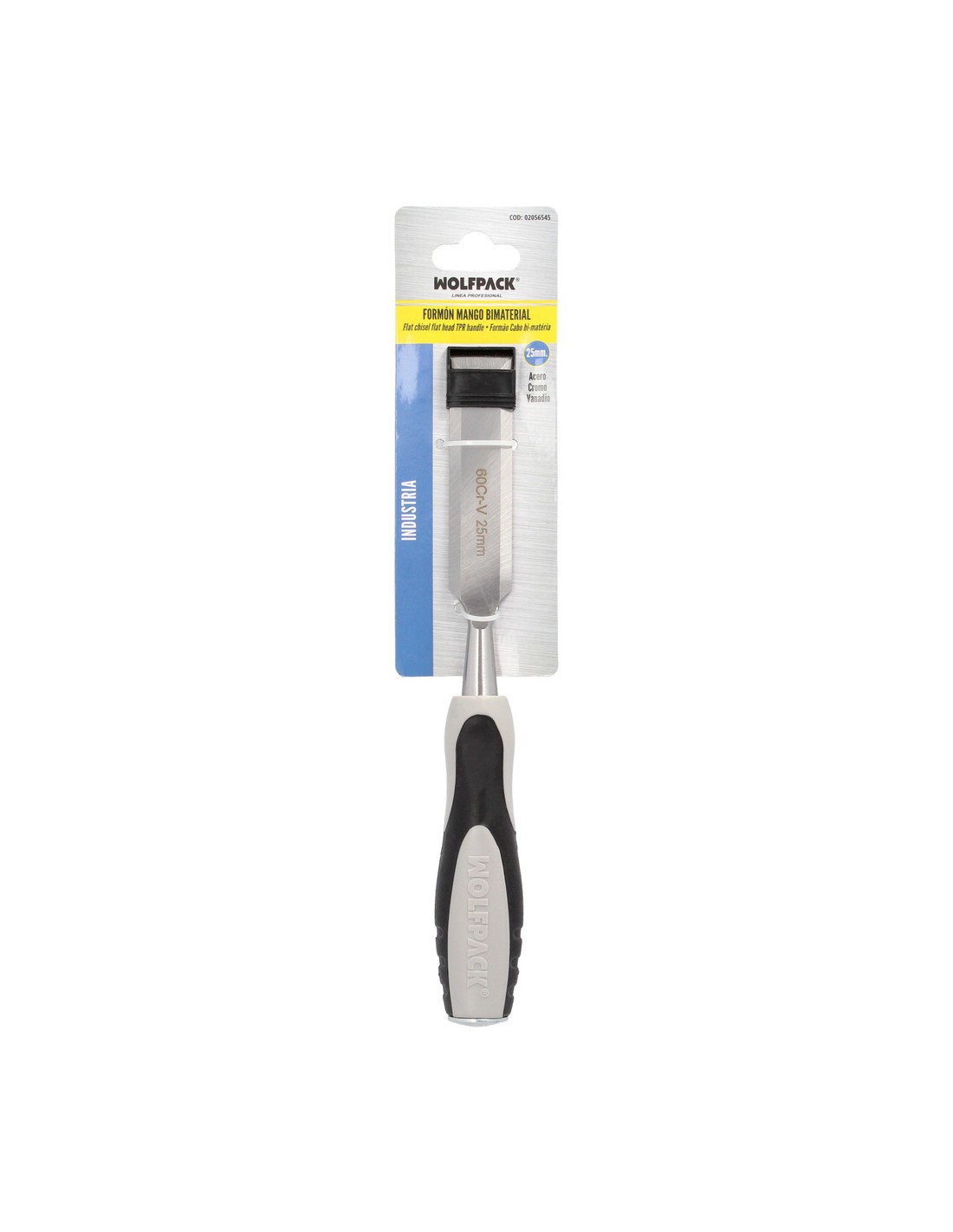 Formon Wolfpack Mango bimaterial 25 mm. - Medidas: largo x ancho, 265 x 25 mm. - Mango ergonómico bimaterial. - Fusión térmica entre mango y hoja para mayor resistencia. - Hoja de acero al cromo vanadio (especial para maderas muy duras).