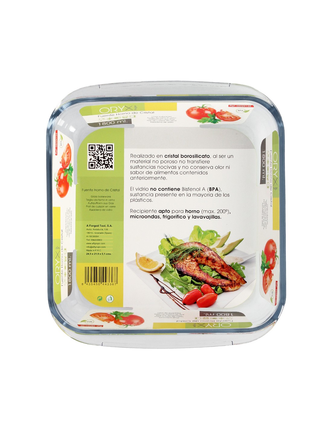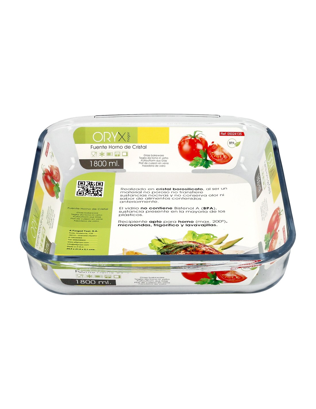 - Recipiente apto para microondas, congelador, lavavajillas y horno (temperatura maxima: 200º grados).