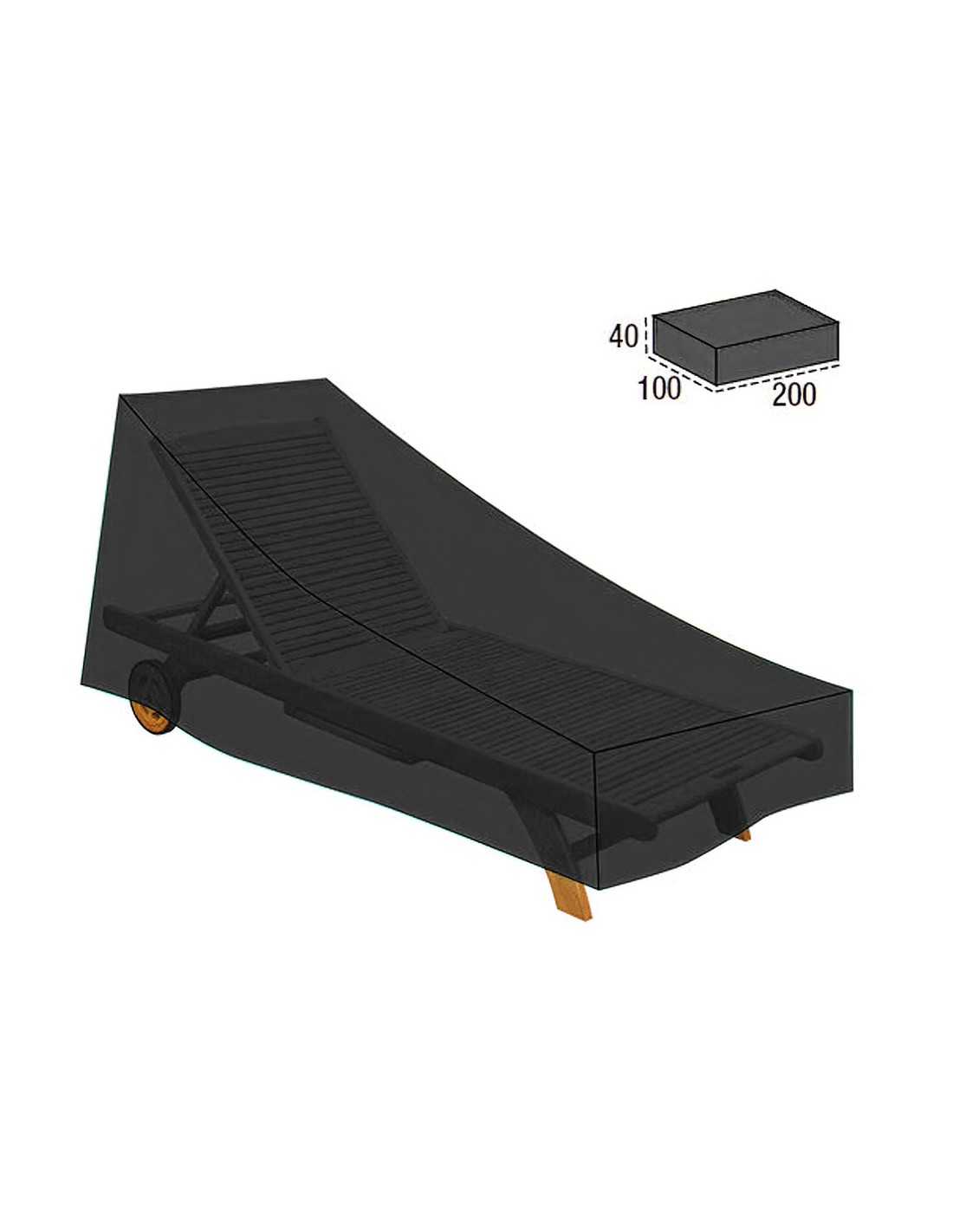 Funda cubre tumbonas. - Medidas: 40x100x200 cm. - Funda realizada en poloetileno 100 gr/m². - Con ojales de aluminio y cuerda de nylon para su fijación. - Ideal para proteger el mobiliario. - Color verde. - Articulo conocido como: funda protectora, cobertor.
