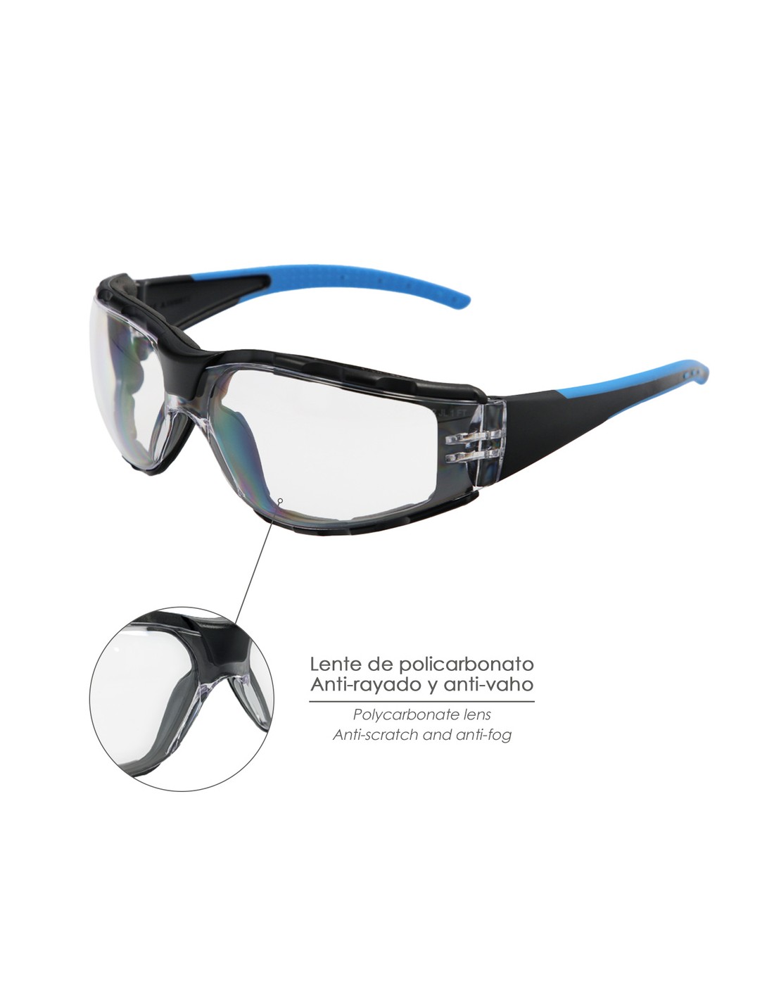 - Lentes de policarbonato con alta resistencia a las rayaduras.