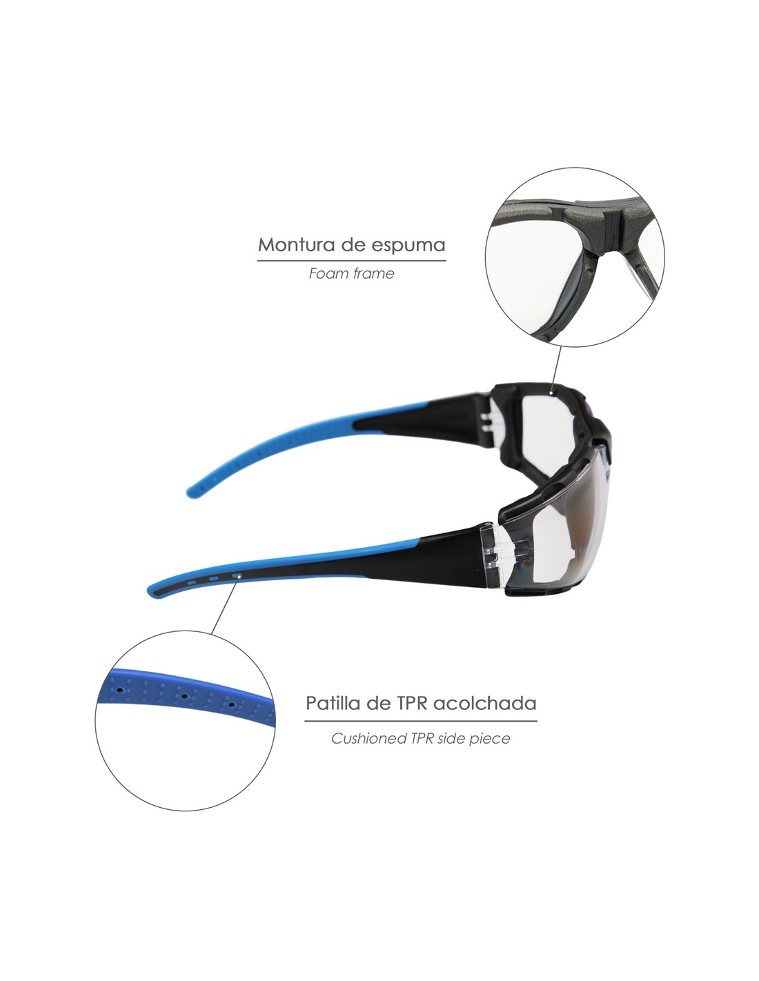 - Montura con de espuma para un ajuste comodo.
