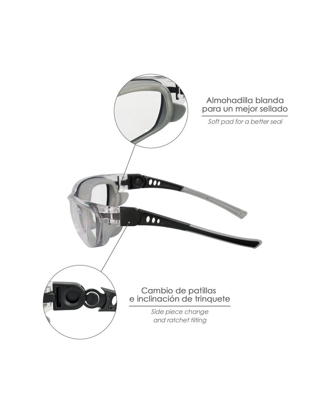 - Montura con almohadillas de goma blanda para un ajuste comodo.