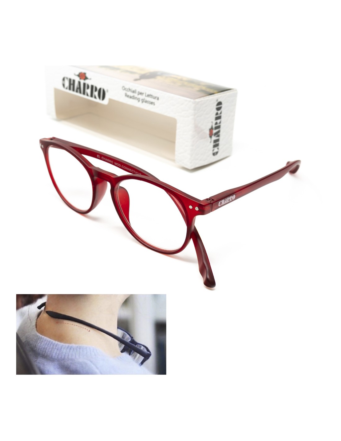 Gafas Lectura Connecticut Color Rojo Aumento +3,5 Patillas Para Colgar Del Cuello , Gafas De Vista, Gafas De Aumento