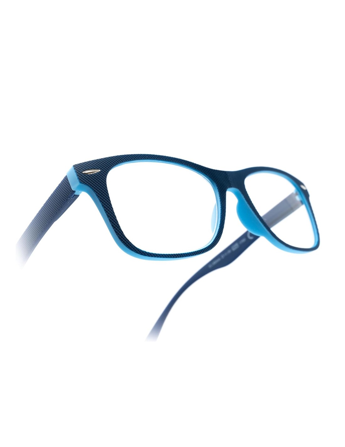 - Gafas de aumento para lectura con montura color azul con relieve.