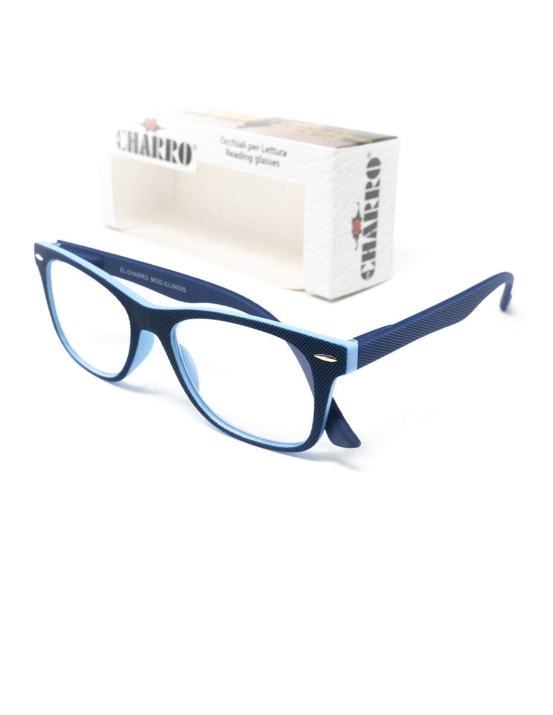 - Gafas de aumento para lectura con montura color azul con relieve.