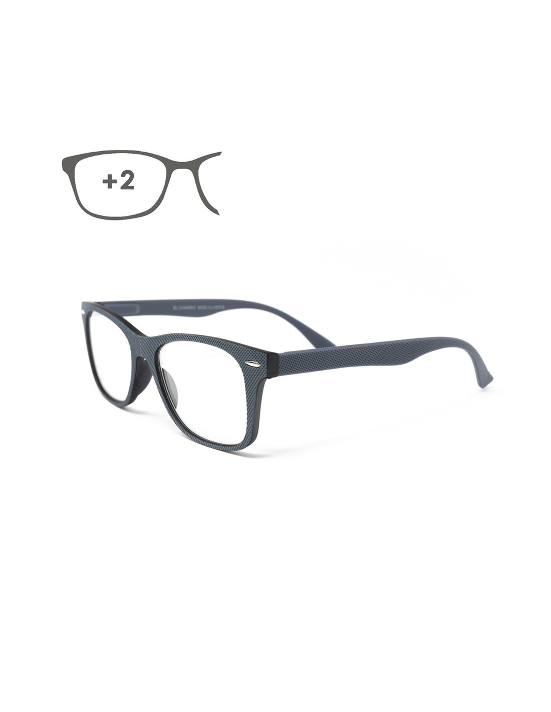 - Gafas de aumento para lectura con montura color gris con relieve.
