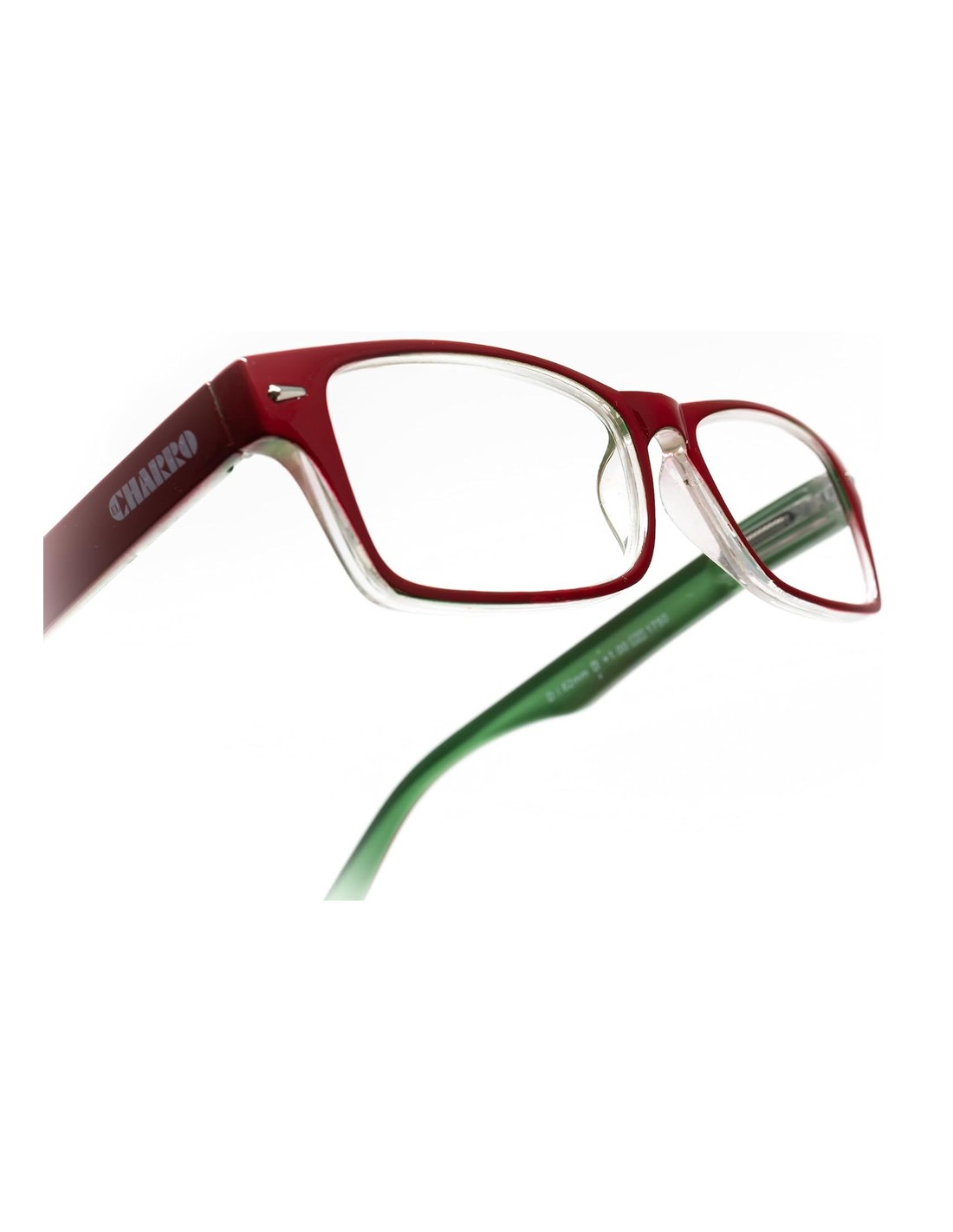 - Gafas de aumento para lectura con montura bicolor rojo y verde. Montura ligera y resistente con un llamativo diseño.