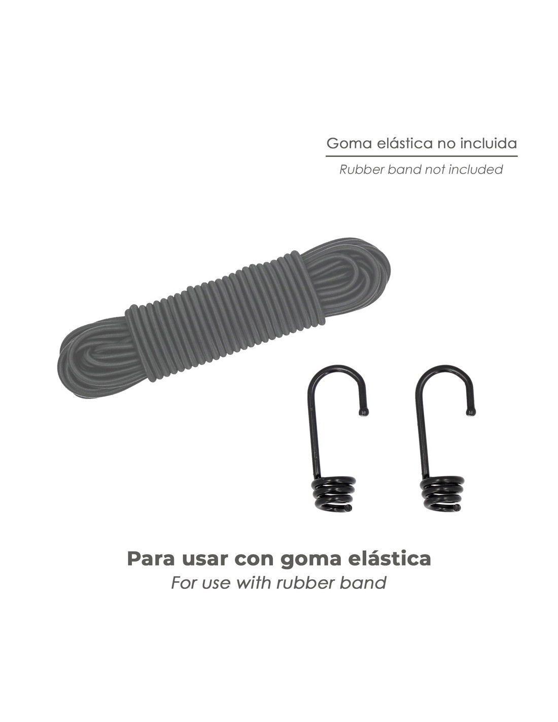 - Artículo también conocido como gancho en espiral, gancho de acero, gancho para cuerda elástica, ganchos de elástico, fijaciones, etc.