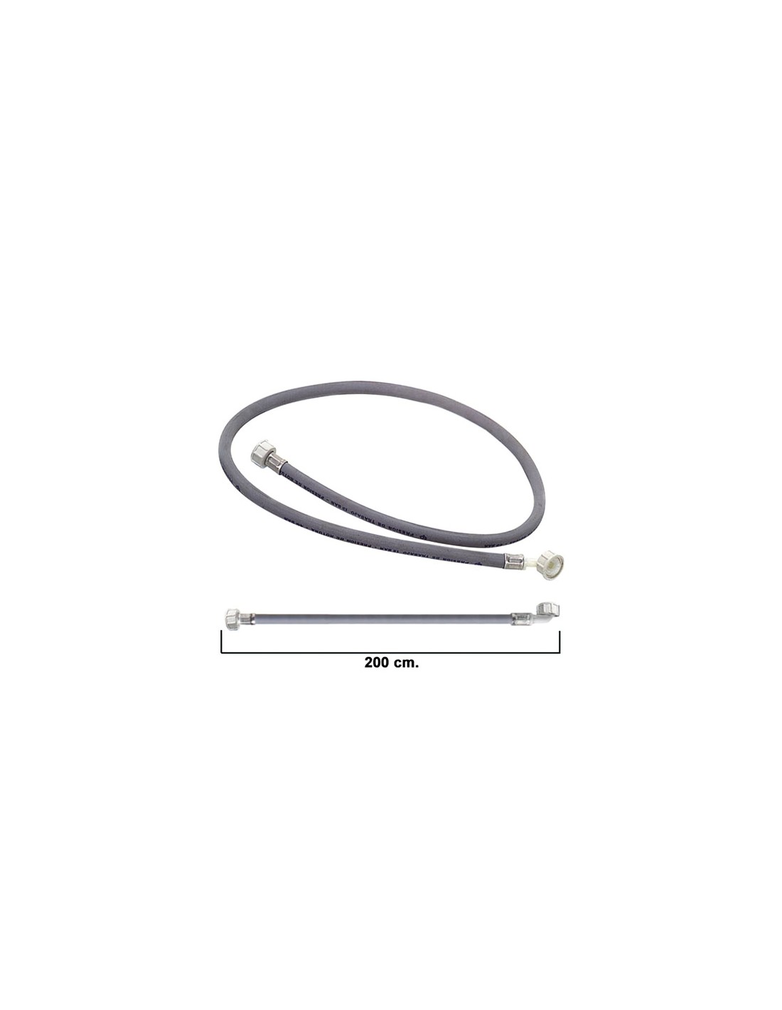 Goma entrada lavadora - Para la conexión de la lavadora a la toma de agua. - Color gris. - Medida 2,00 metros. - Articulo también conocido como tubo, desagüe.