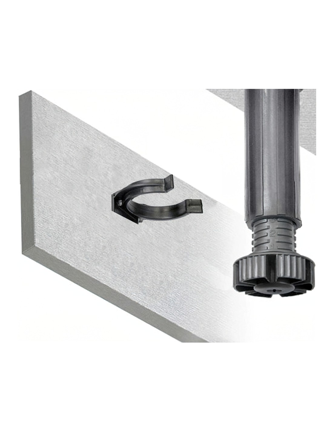 - Grapa para atornillar al rodapie del mueble de cocina o baño y fijalo a la pata del mueble.