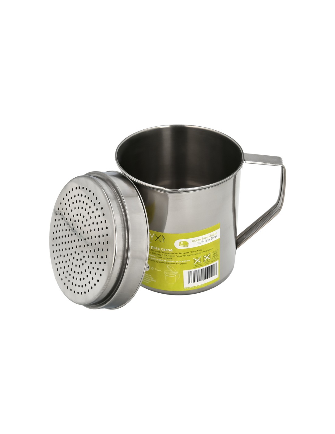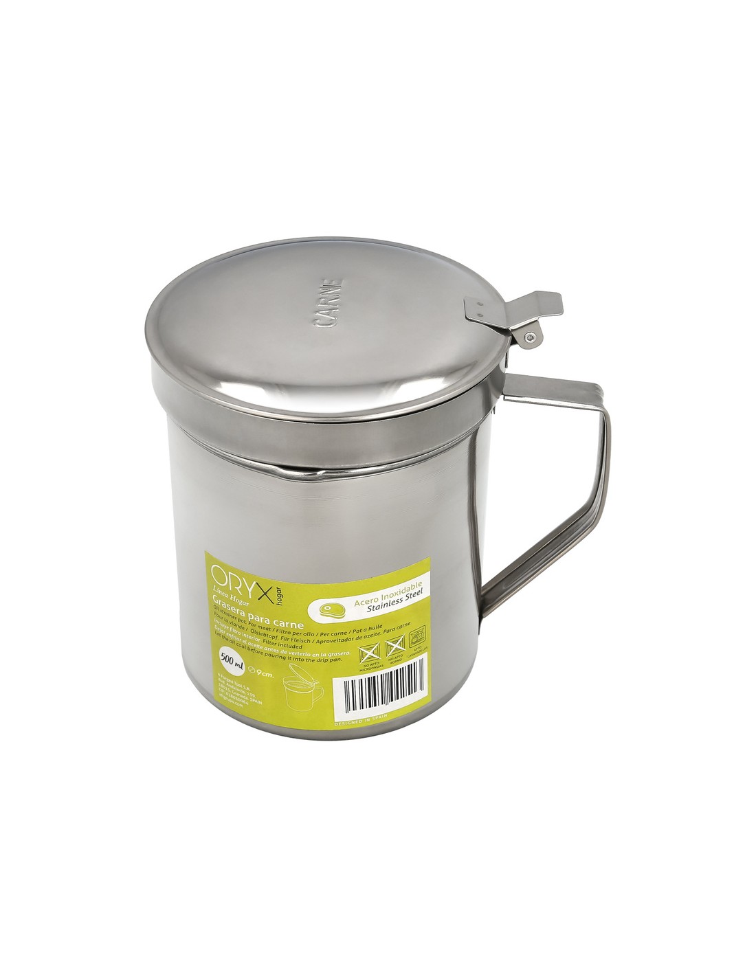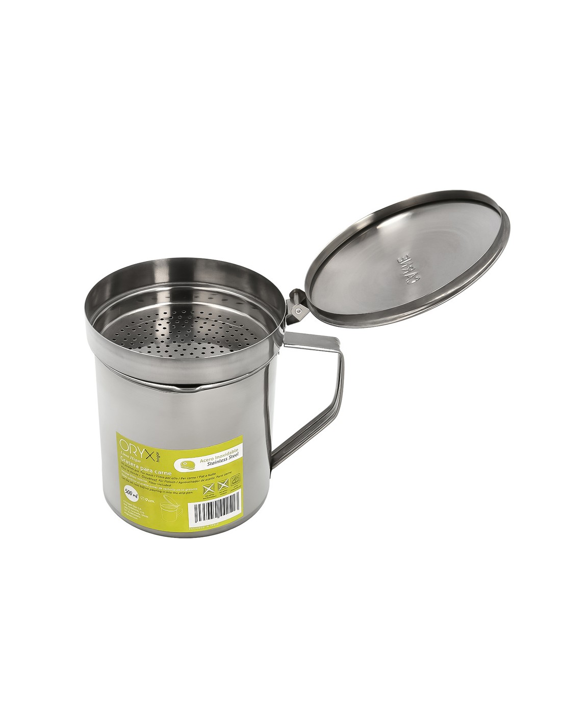 Grasera Acero Inoxidable Para Carne, Aceitera Aceite Usado 0,5 lts. Con Colador y Tapa, Recipiente Reciclaje Aceite Usado Carne