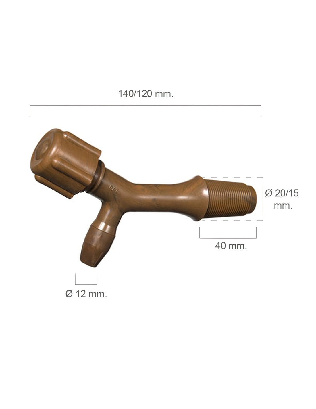 Grifo barril / bidones - Realizado plástico. - Para 100 litros. - Medidas: 120 mm de longitud y 18 mm de diámetro exterior, - Rosca cónica de 40 mm, partiendo su conocidad desde 16 hasta 20 mm de diámetro. - Articulo tambien conocido como grifo tonel, grifo toneles.