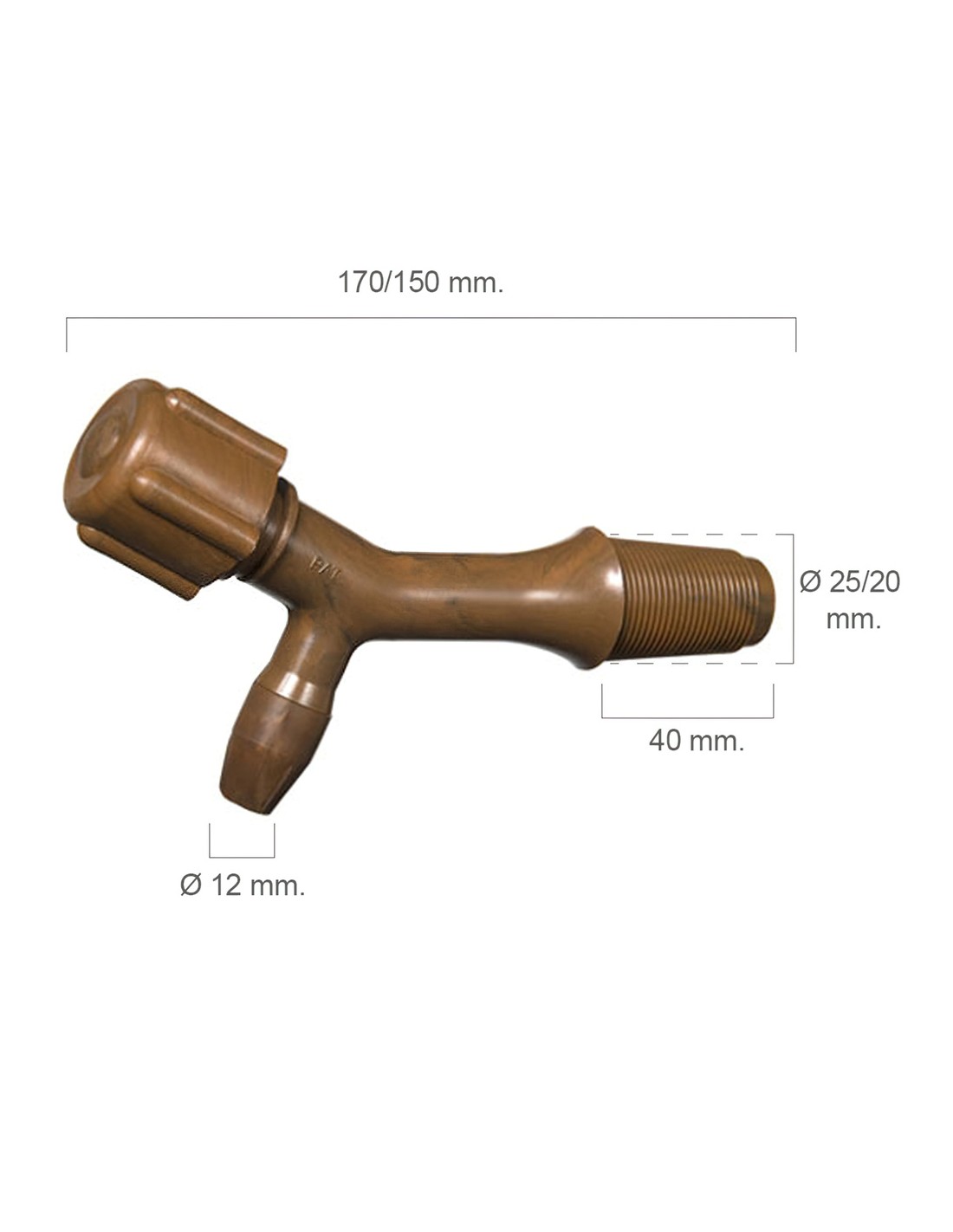 - Rosca cónica de 40 mm, partiendo su conocidad desde 20 hasta 25 mm de diámetro.