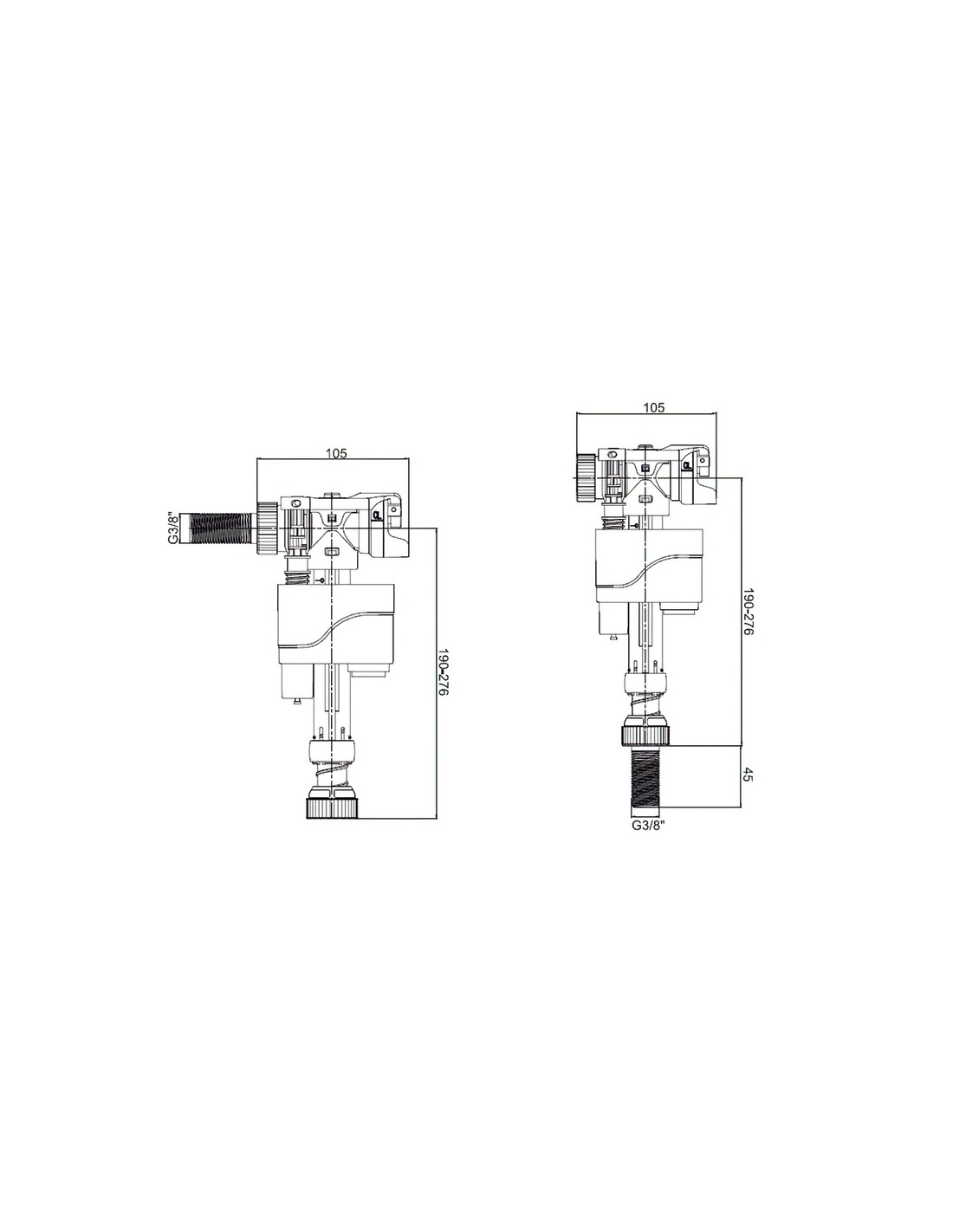 - Posibilidad de usar siempre el mismo grifo de flotador compacto, tanto en una cisterna de toma lateral como en una cisterna de toma baja, ya que el racor de entrada puede intercambiarse entre la toma baja y la toma lateral.