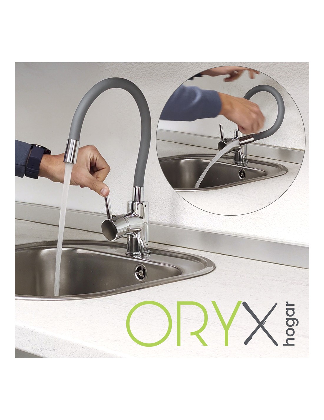 - Articulo conocido como griferia flexible, grifo caño flexible, grifo extensible, grifo monomando universal, griferia para fregaderos cocina, grifo con caño giratorio.