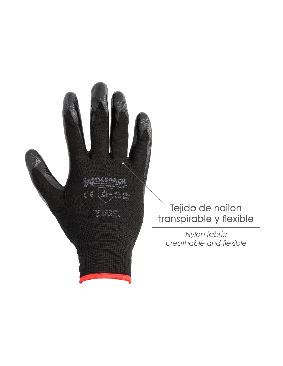- Guante de Nylon revestido con nitrilo en palma y dedos