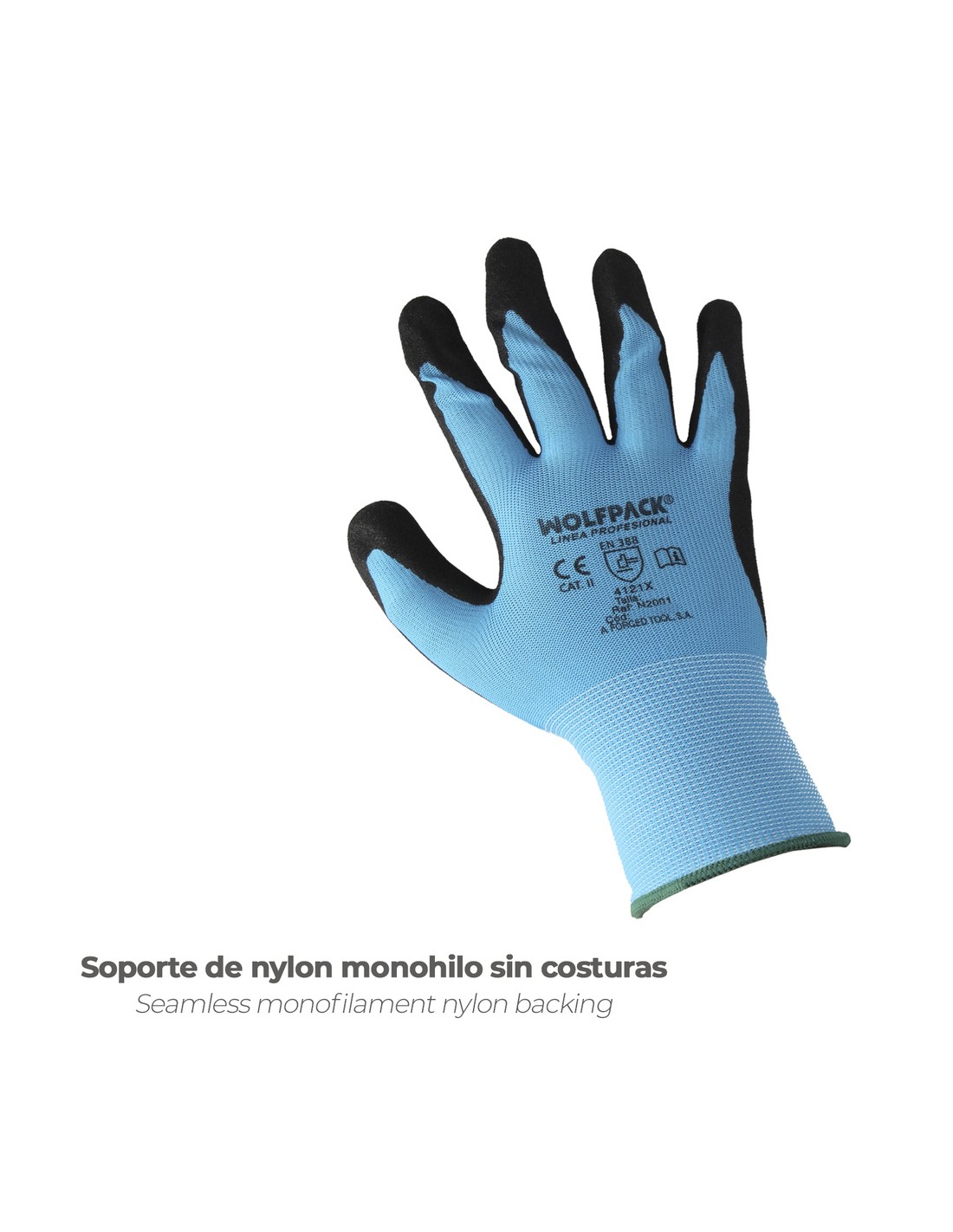 - Gracias al refuerzo en nitrilo aumenta la resistencia del guante.