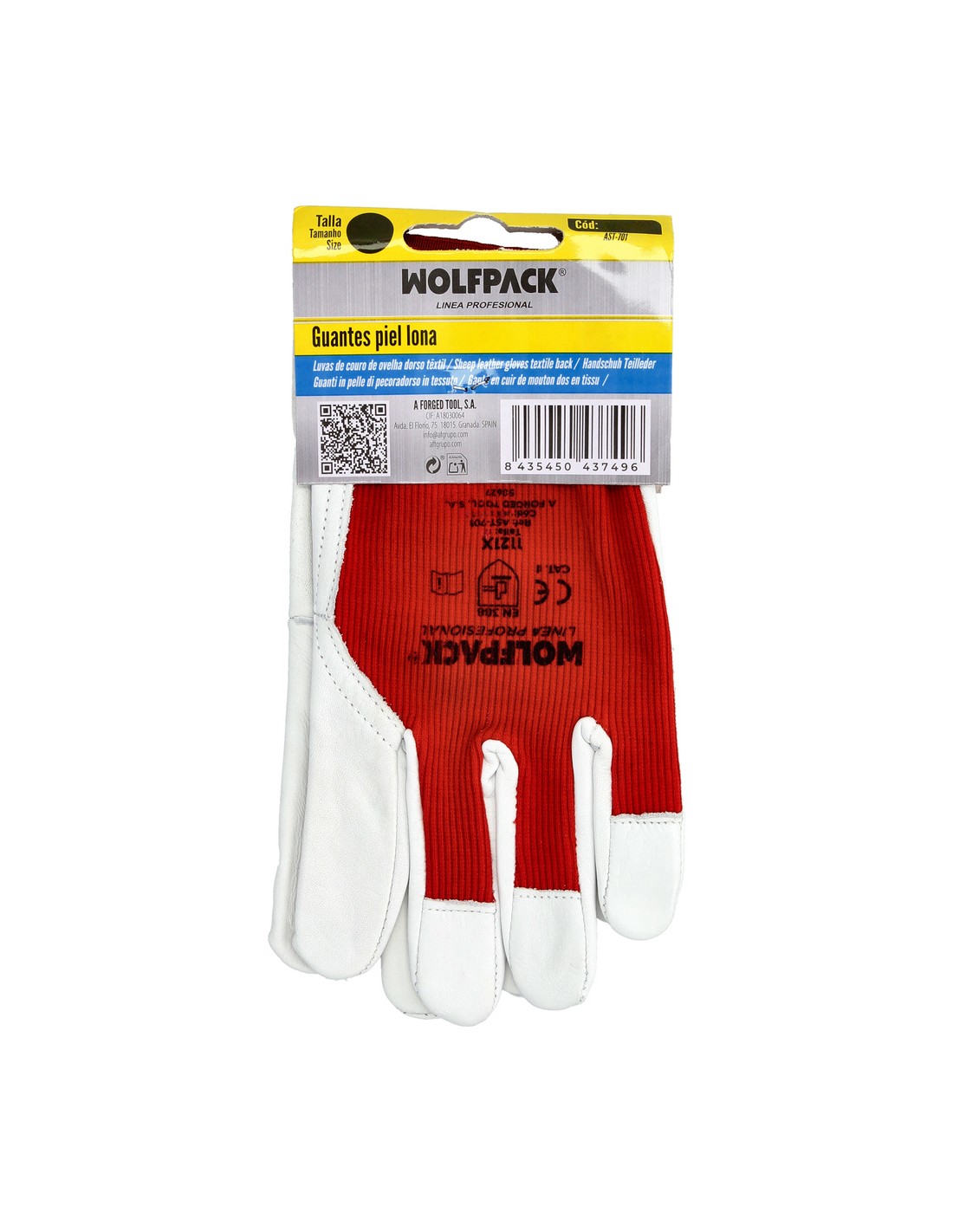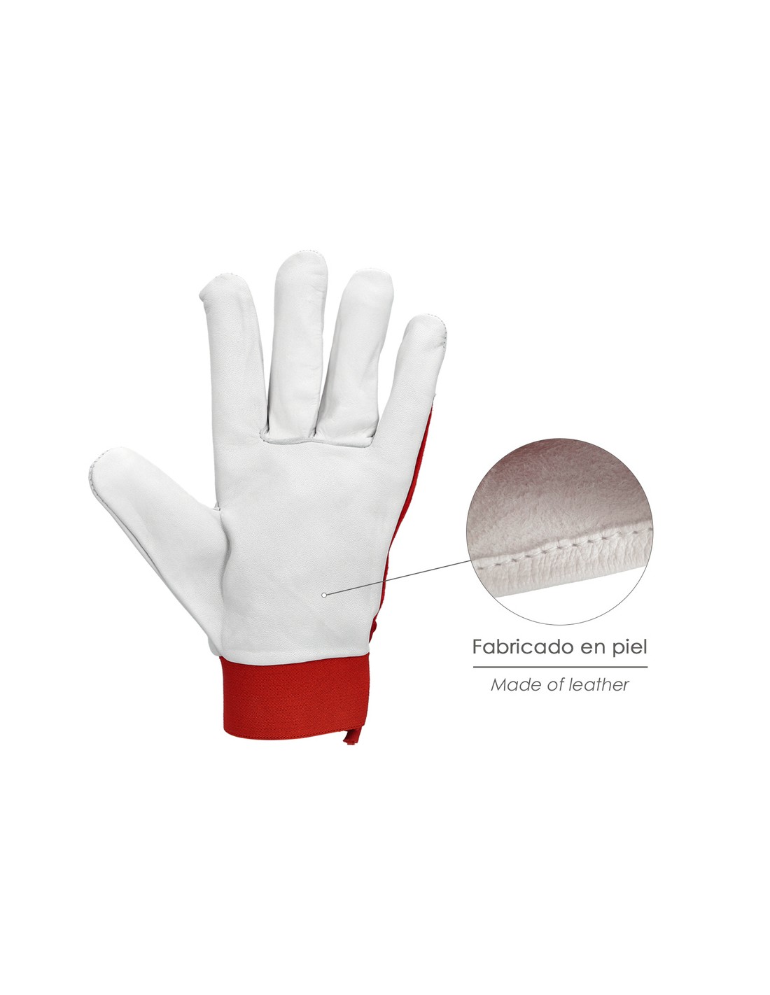- Guante en piel, dorso textil en lona para una mejor transpiración.