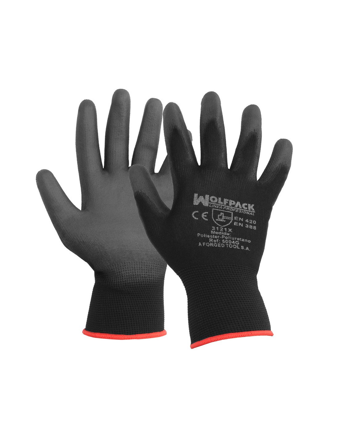 - Guante sin costura de nylon gris, con recubrimiento en palma de poliuretano. Gran capacidad de adherencia y sujeción gracias a su recubrimiento antideslizante.