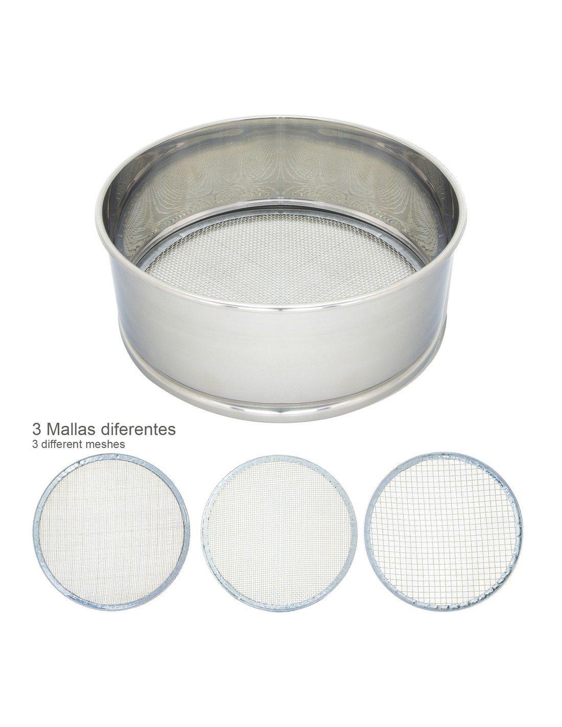 - 3 mallas de acero con espesores diferentes, ideal para cualquier tamizado.