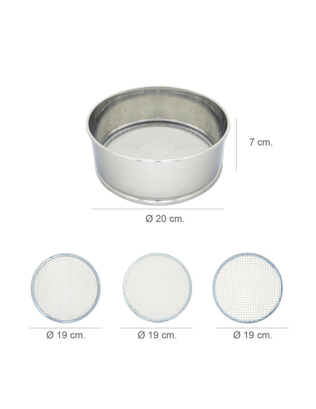 Harinero Tamizador Acero Inoxidable Ø 20 cm. Con 3 Mallas Intercambiables