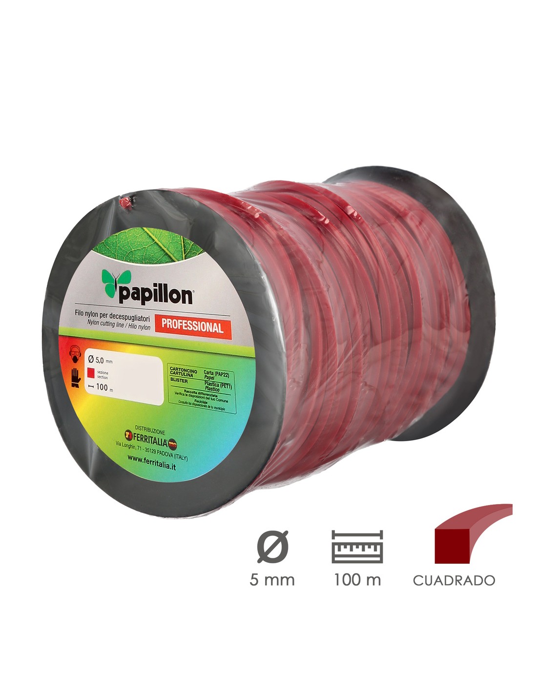 Hilo Nylon Desbrozadoras Cuadrado Professional Ø 5,0 mm. Rollo 100 metros. Hilo Nylon Corte Desbrozadores Hierba, Jardin, Maleza