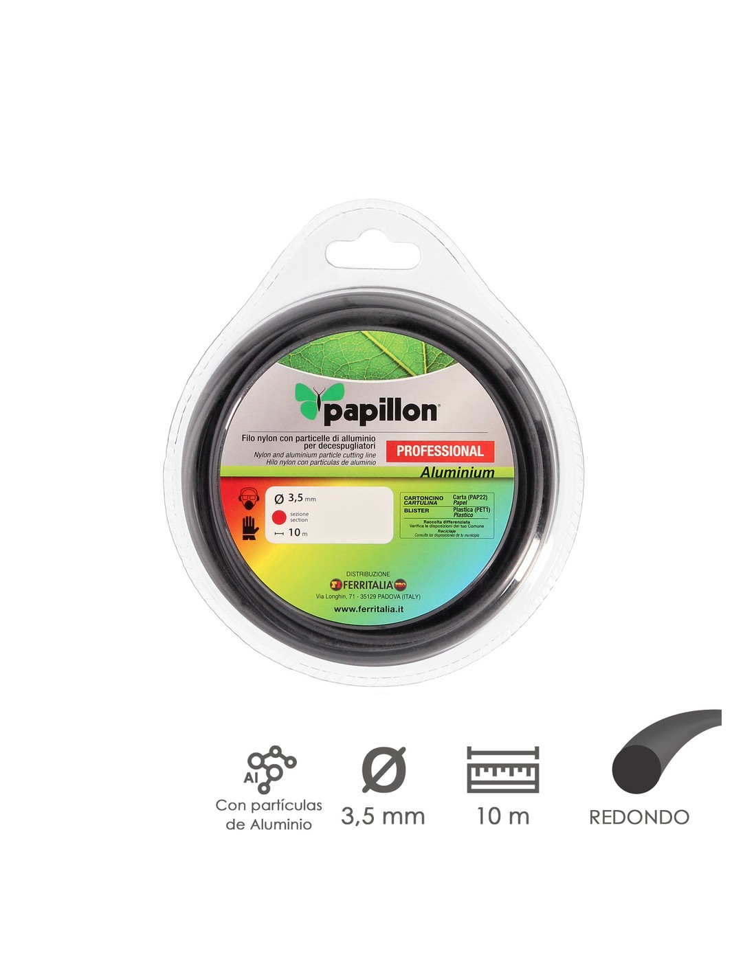 Hilo Nylon y Aluminio Desbrozadoras Redondo Professional Ø 3,5 mm. Rollo 10 metros. Hilo Nylon Corte Hierba, Jardin, Maleza