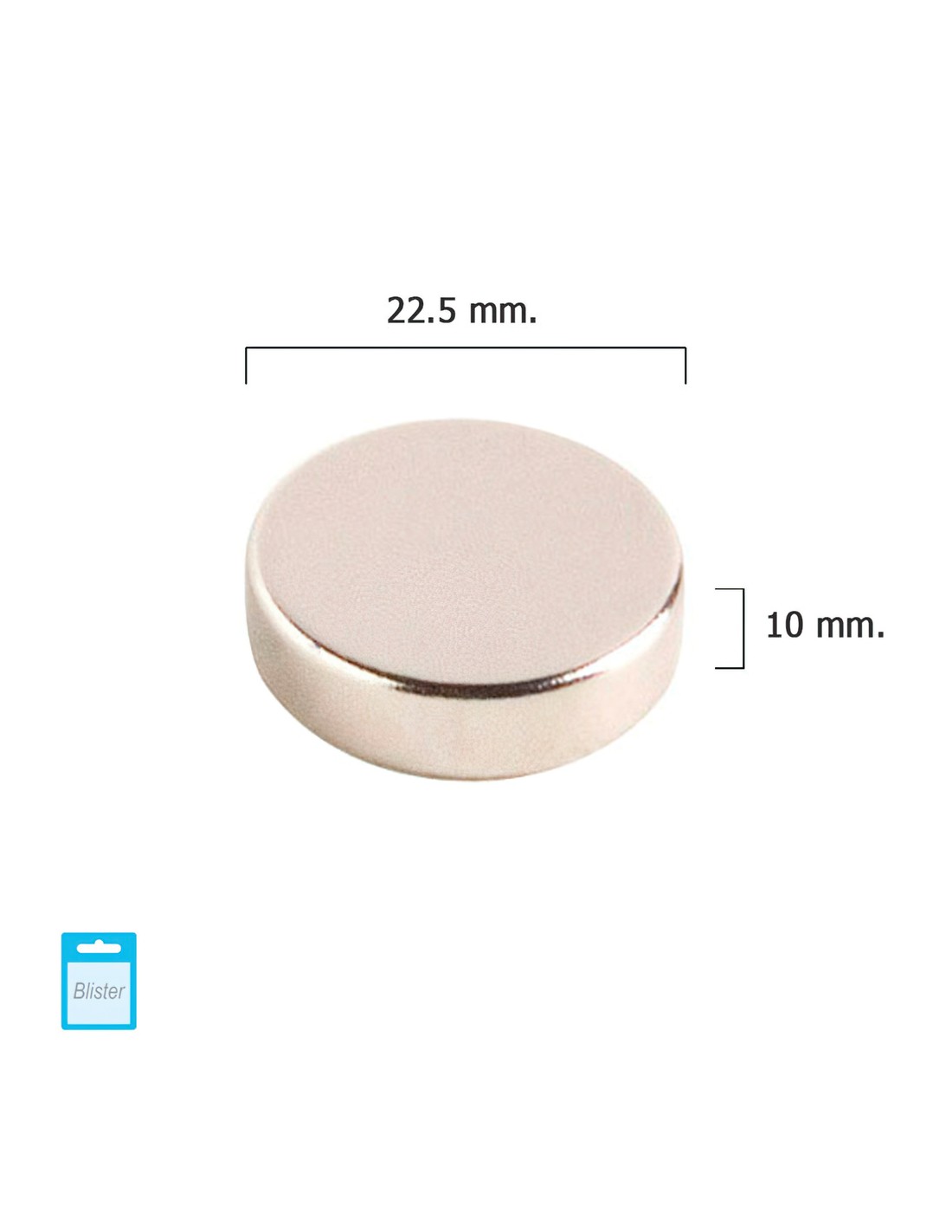 Iman magnetico Wolfpack - Neodimio redondo. - Medida 22,5x10mm. - Blister 1 pieza. - Uso estrictamente doméstico. - No apto para uso profesional. - No apto para sujeción de carga.