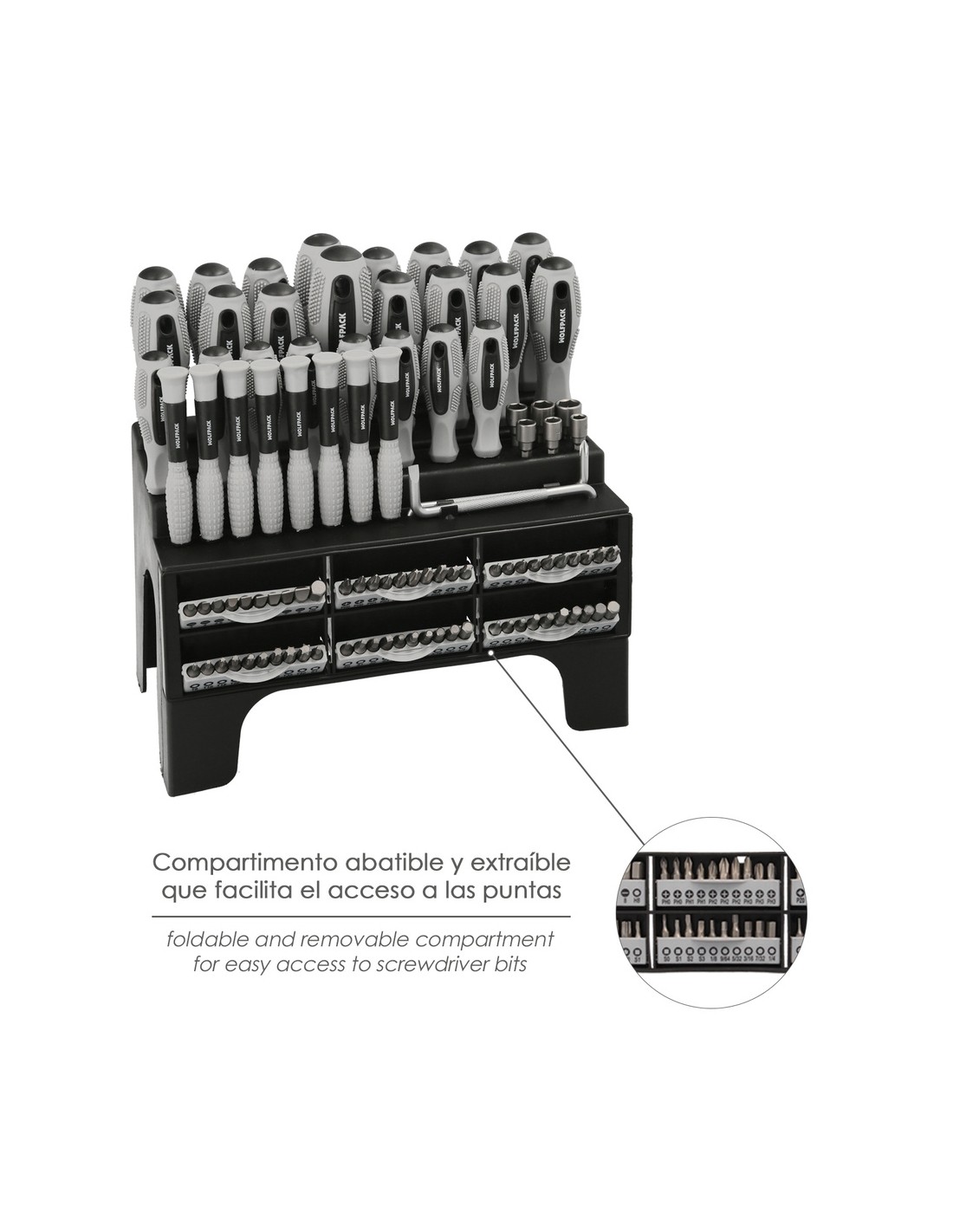 - Con soporte organizador para tener todos los destornilladores y puntas ordenados.