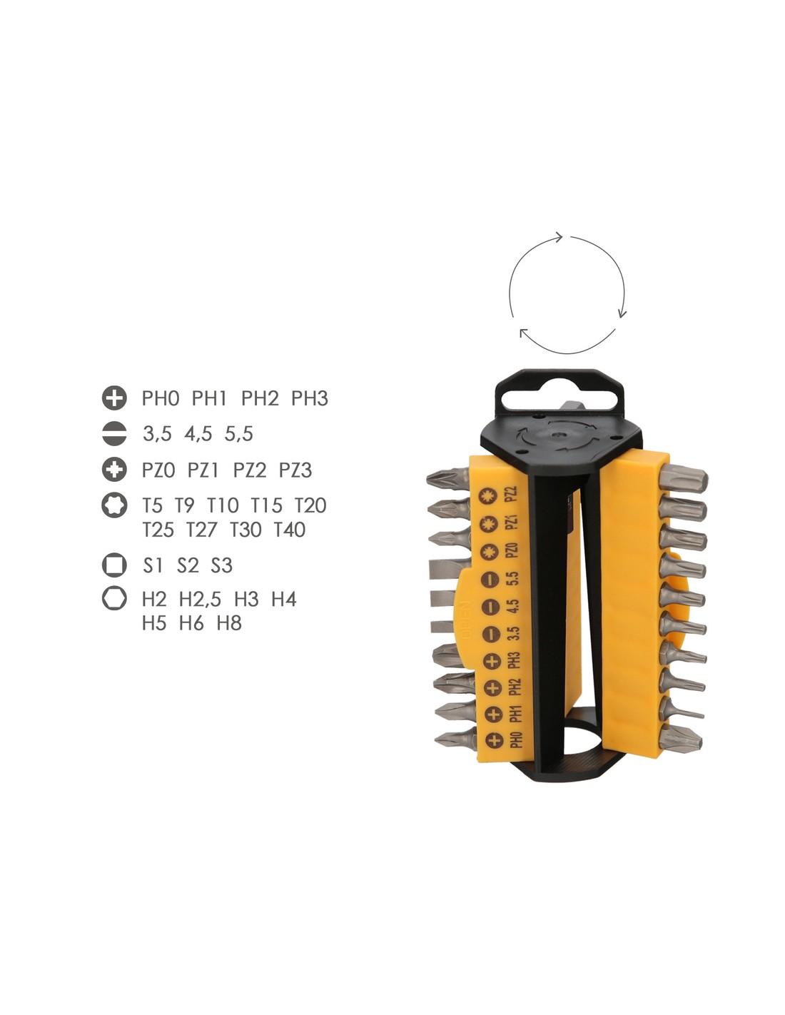 - Puntas torx de T05 / T09/ T10 / T15 / T20 / T25 / T27 / T30 / T40.