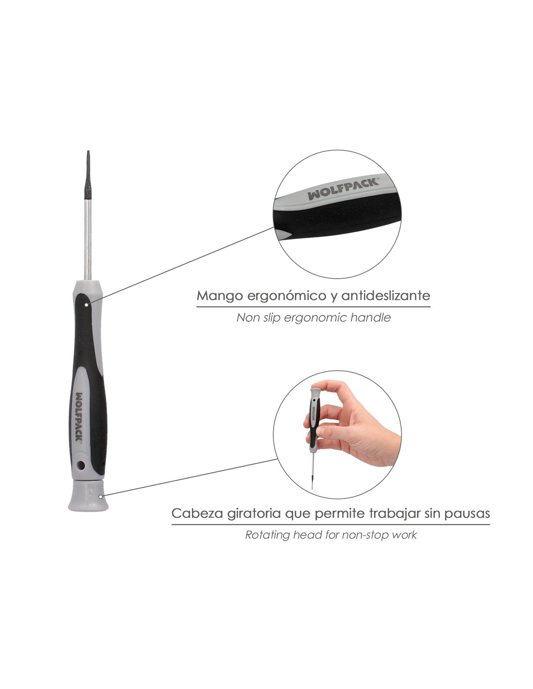 - Mango ergonomico con goma antideslizante, previniendo que el destonillador se resbale.