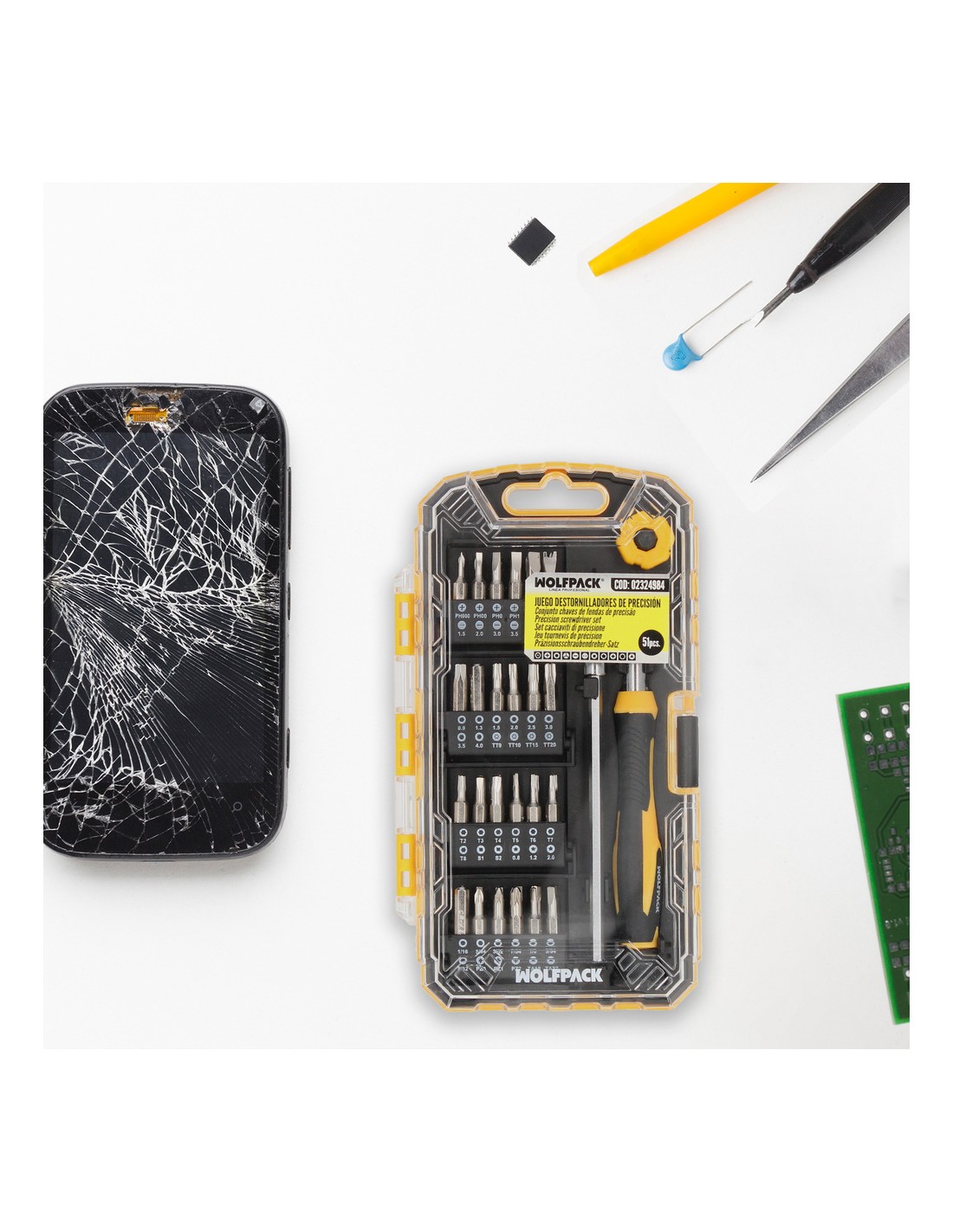 - Es compatible con el desmontaje y mantenimiento de portátiles, móviles, tabletas, relojes, gafas, cámaras digitales, juguetes, consolas y diversos aparatos electrónicos en los que se necesite atornillar o desatornillar con precisión.