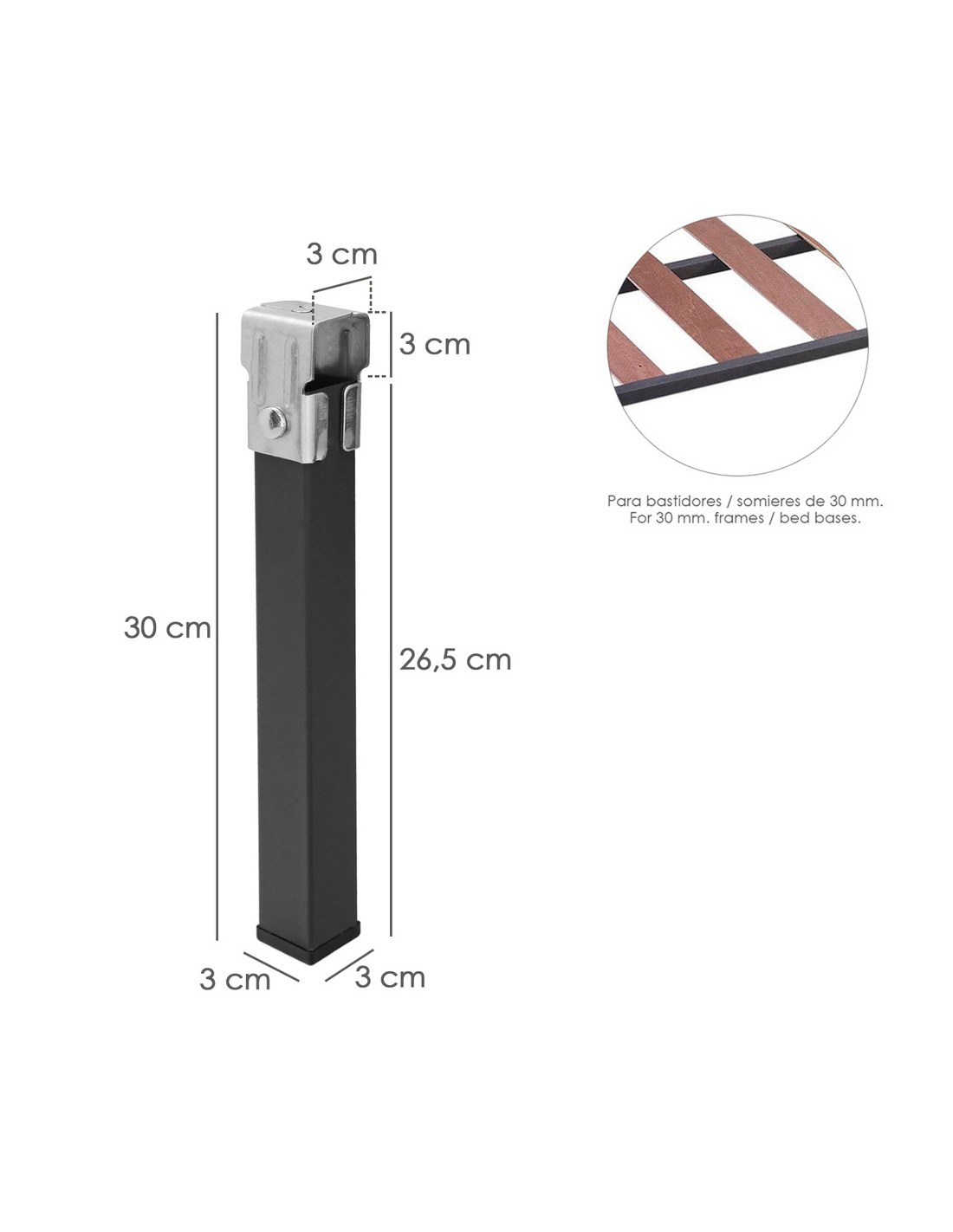 Juego Patas Somier Cuadradas (4 Unidades) Tubo 30x30 mm. Para Somier de 30x30 mm. Altura 25 cm.
