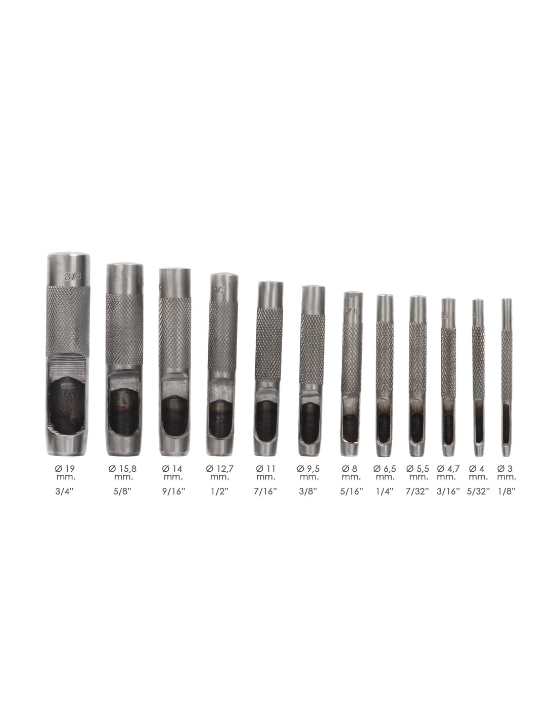 Juego Sacabocados Golpe 12 Piezas 3 a 19 mm